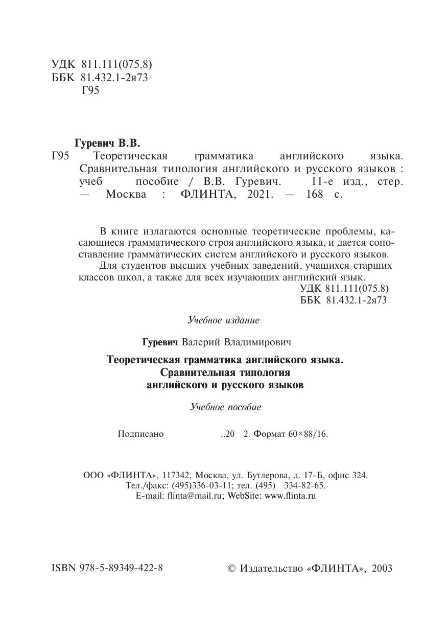 В книге излагаются основные теоретические проблемы, касающиеся грамматического строя английского языка, и дается сопоставление грамматических систем английского и русского языков.