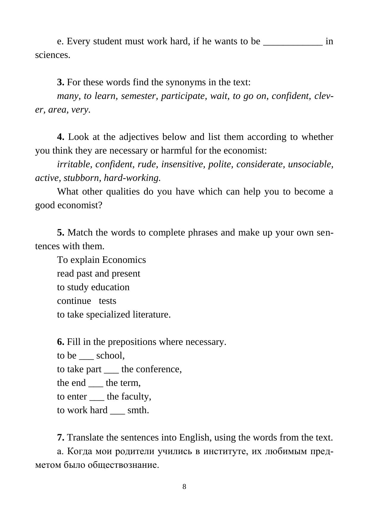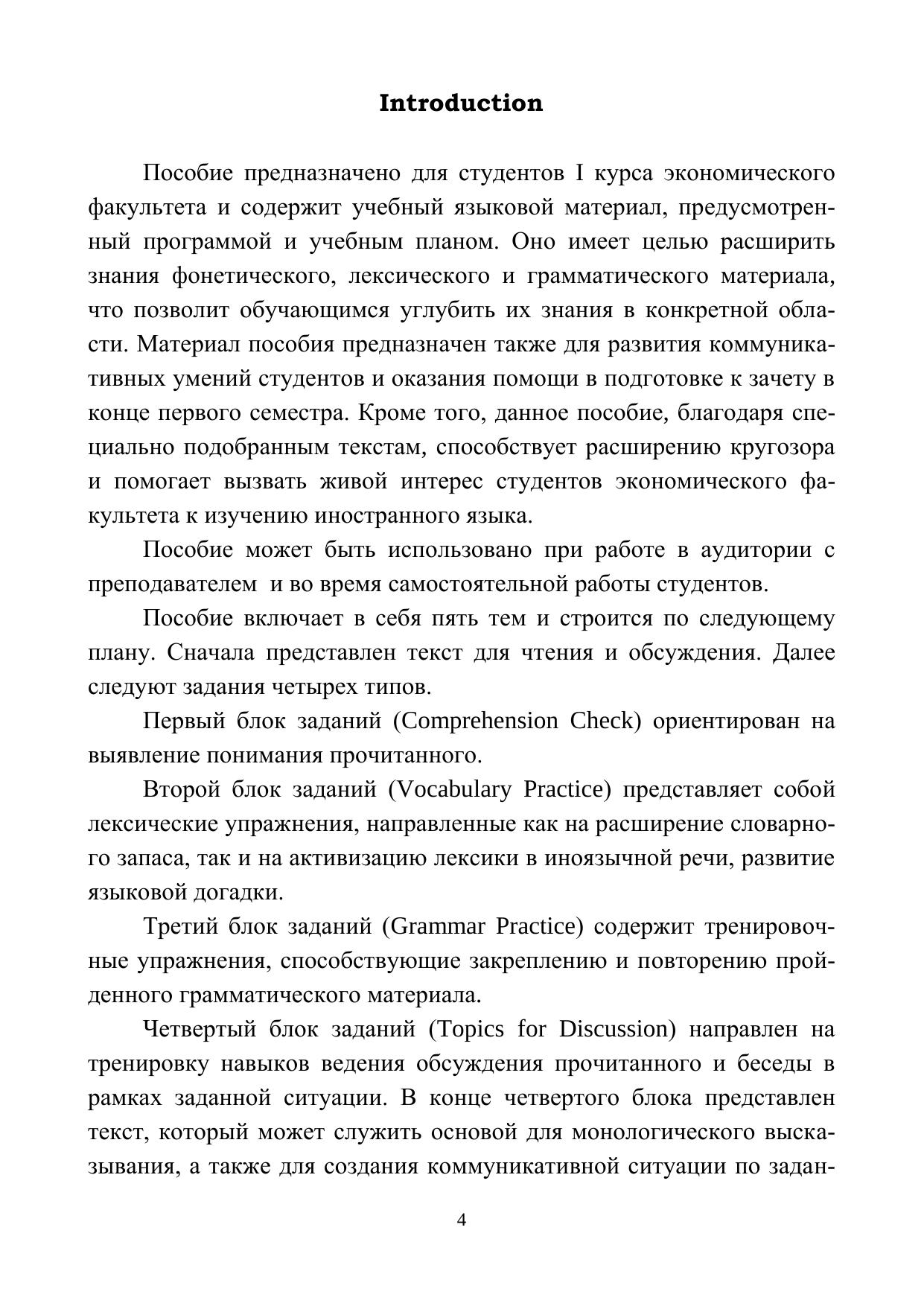 Пособие предназначено для студентов I курса экономического факультета и имеет целью оказать обучающимся помощь в работе с тематическими текстами по специальности, в усвоении лексико-грамматического материала и организации самостоятельной работы студентов.