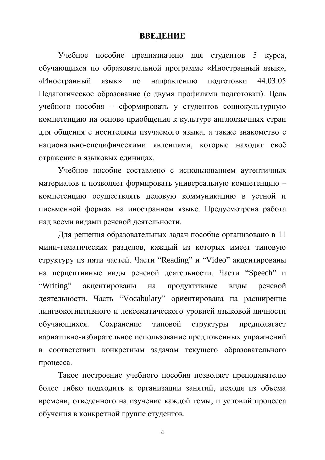 Пособие состоит из одиннадцати разделов, включающих учебный материал и задания, направленные на совершенствование лексических навыков, навыков письменной речи, умений говорения, чтения и аудирования, как для аудиторной, так и самостоятельной работы.