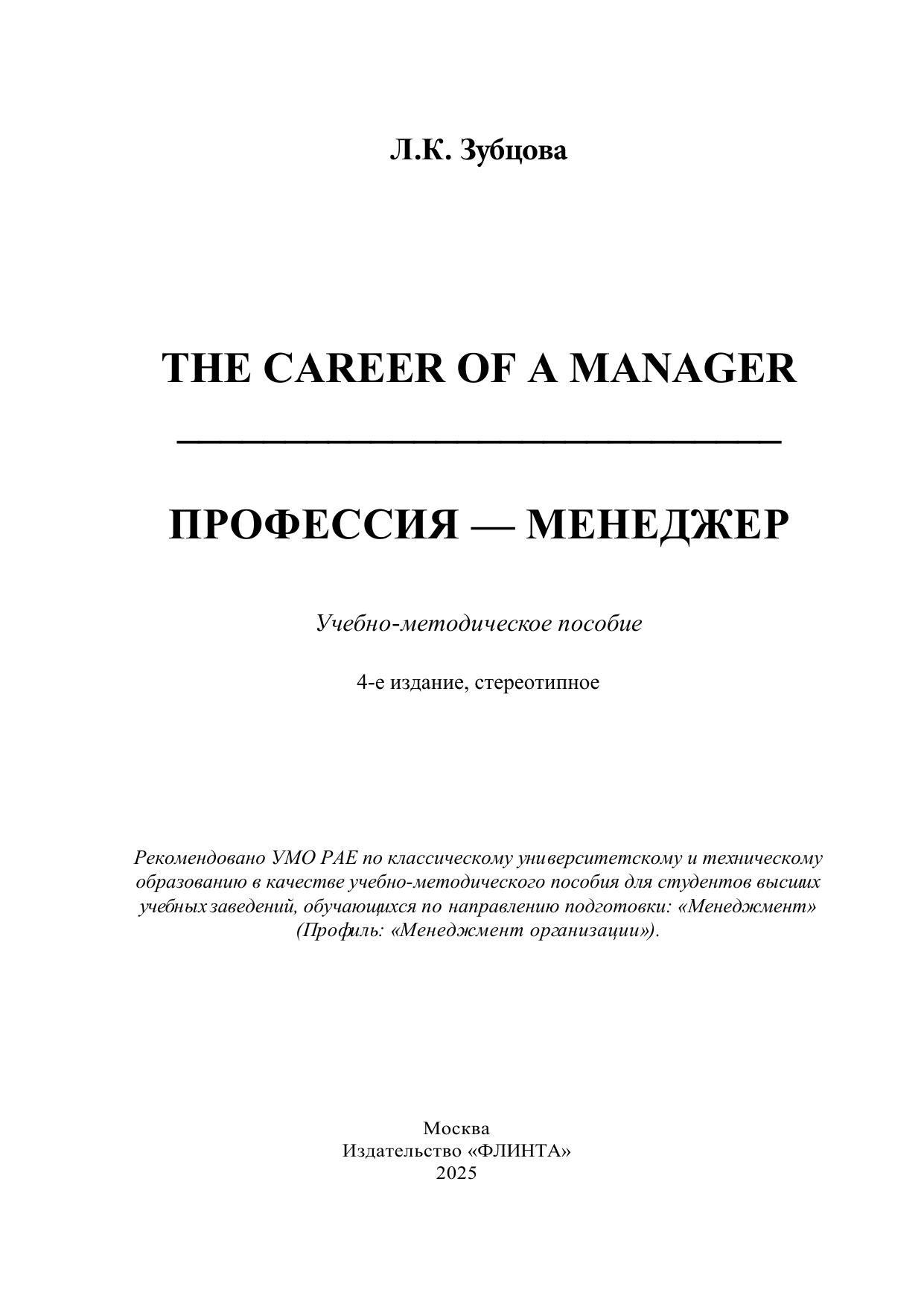 The Career of a Manager = Профессия – менеджер