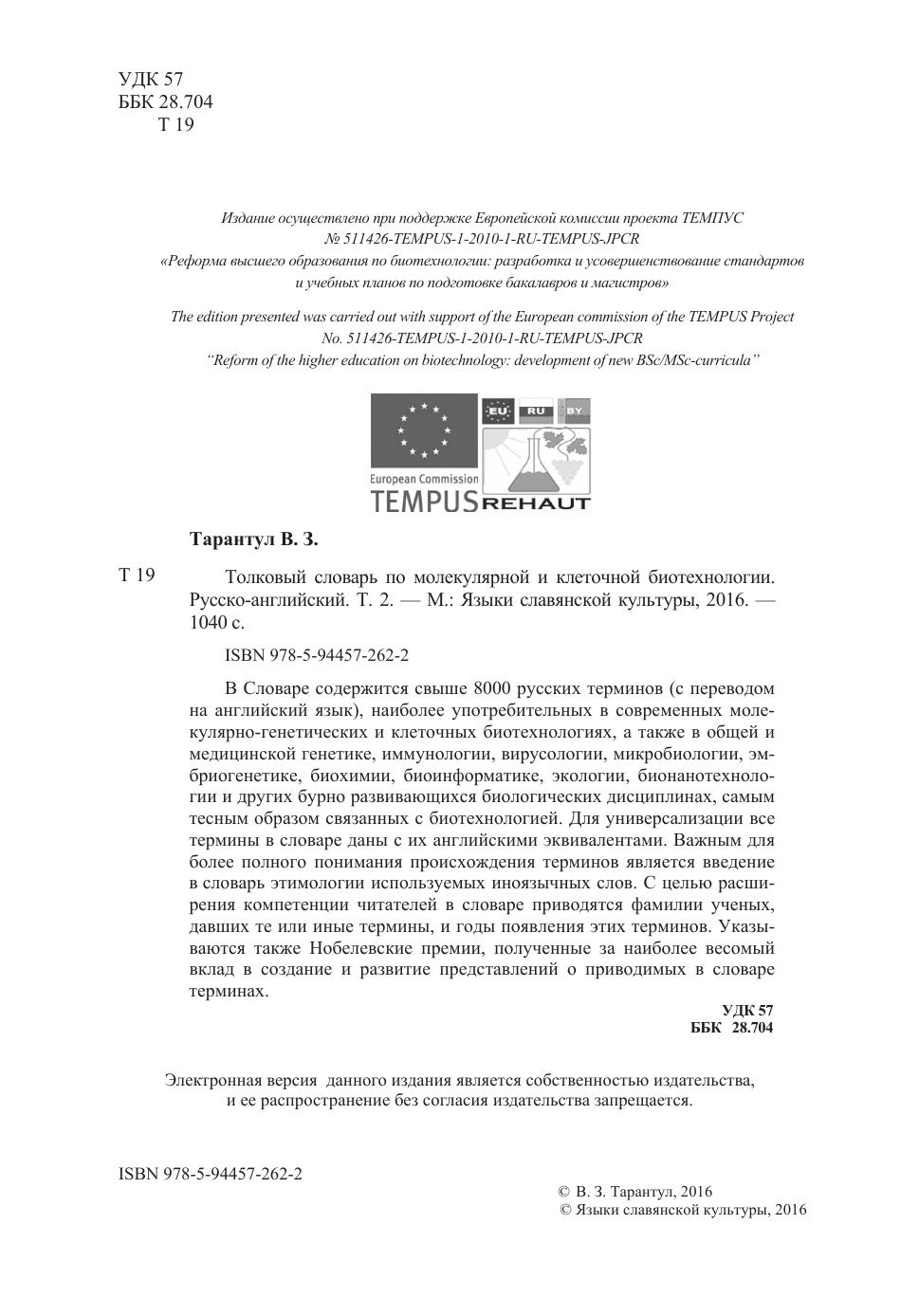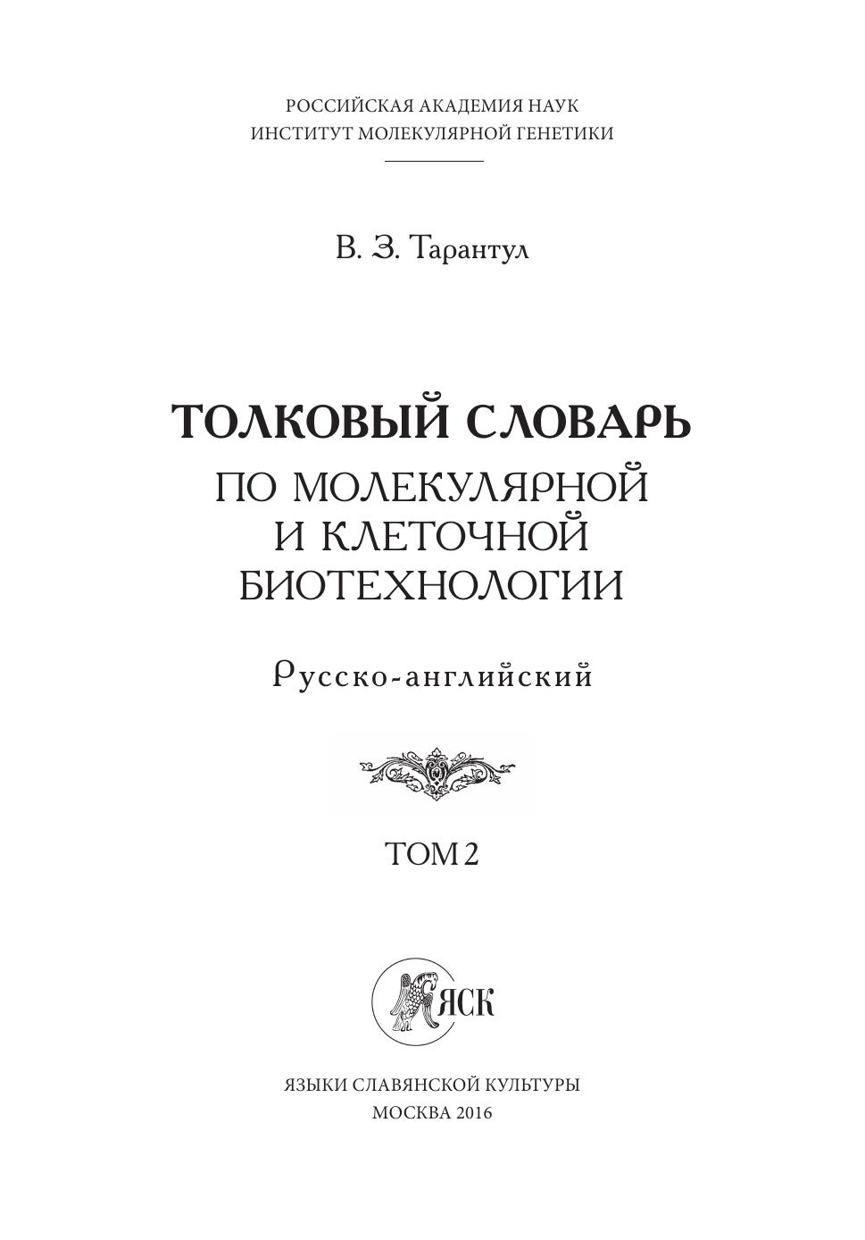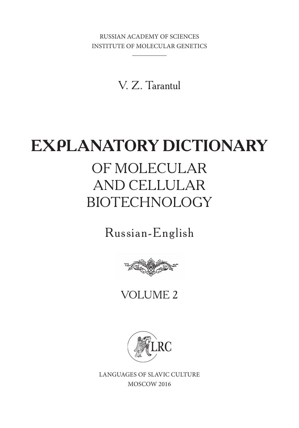 Толковый словарь по молекулярной и клеточной биотехнологии. Русско-английский. Т. 2
