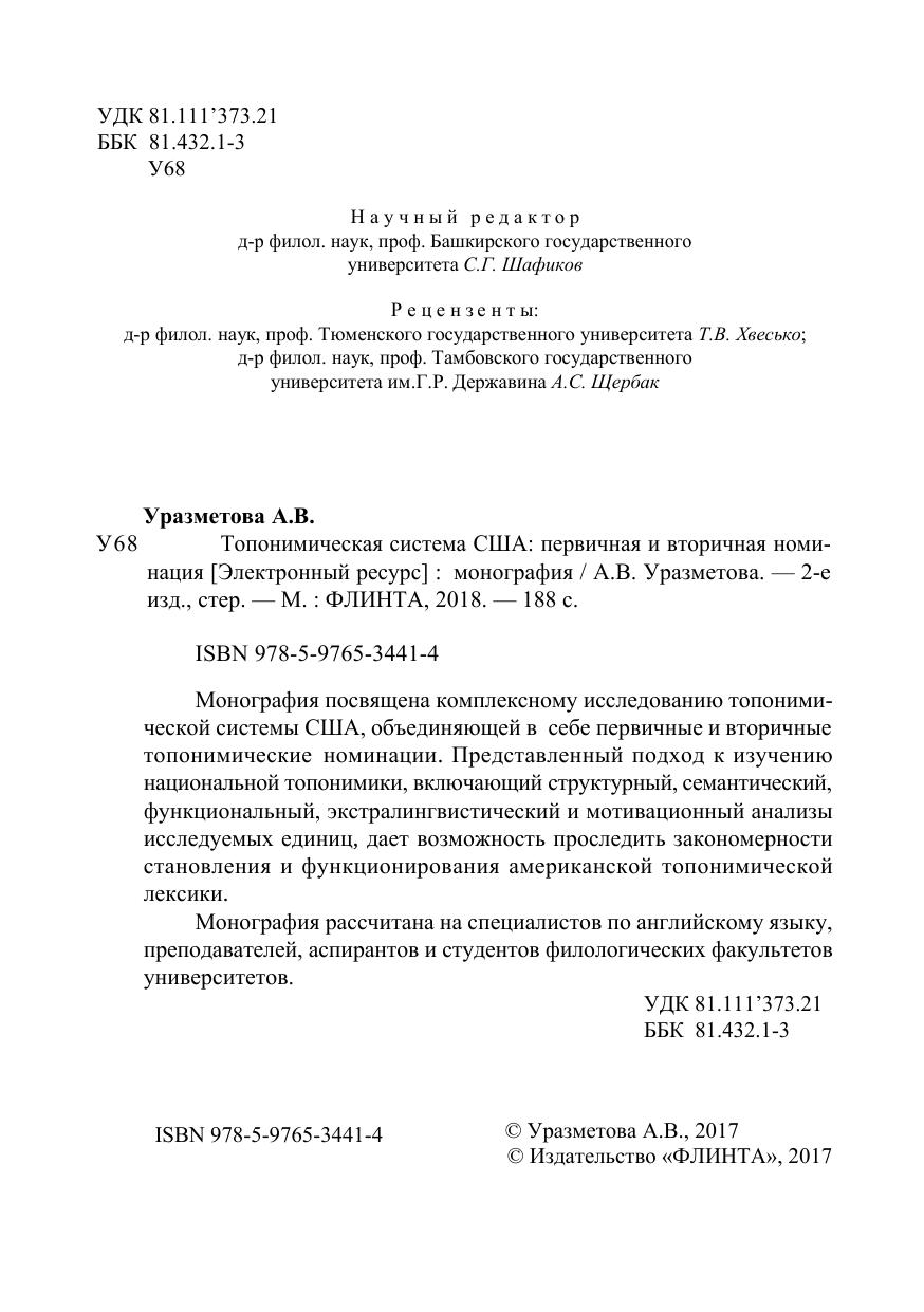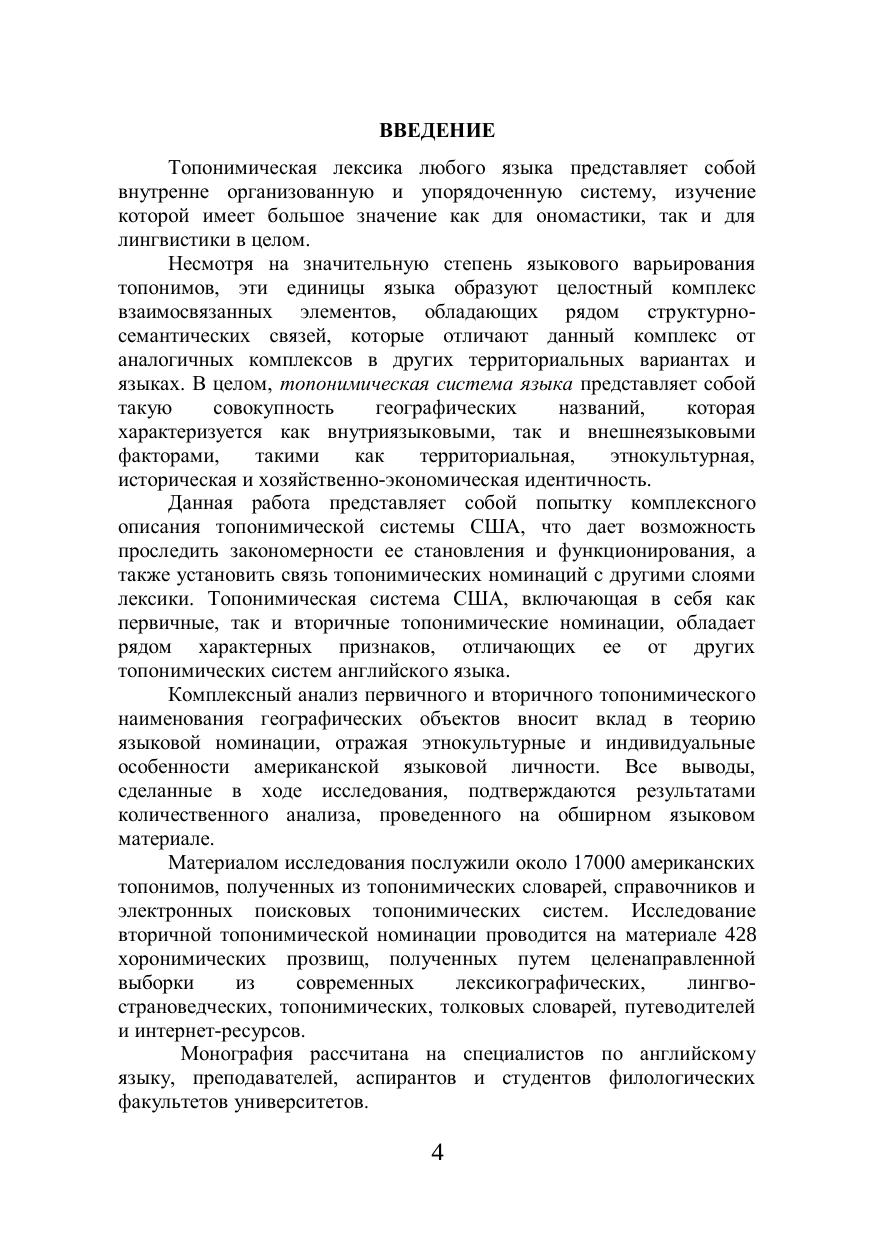Монография посвящена комплексному исследованию топонимической системы США, объединяющей в себе первичные и вторичные топонимические номинации. Представленный подход к изучению национальной топонимики, включающий структурный, семантический, функциональный, экстралингвистический и мотивационный анализы исследуемых единиц, дает возможность проследить закономерности становления и функционирования американской топонимической лексики.