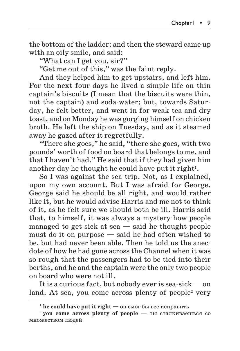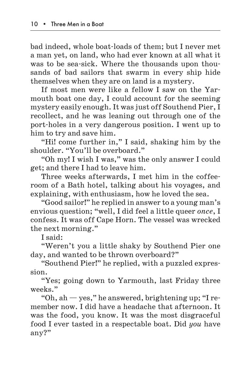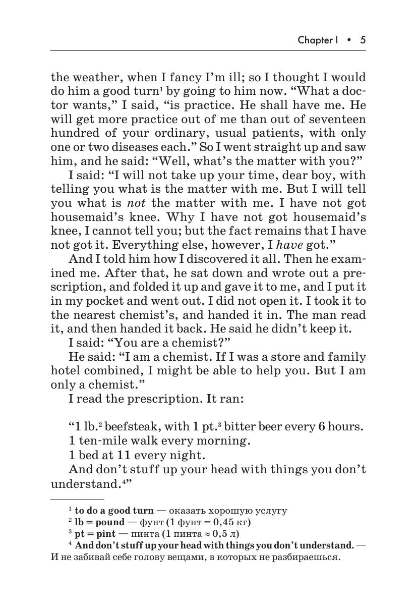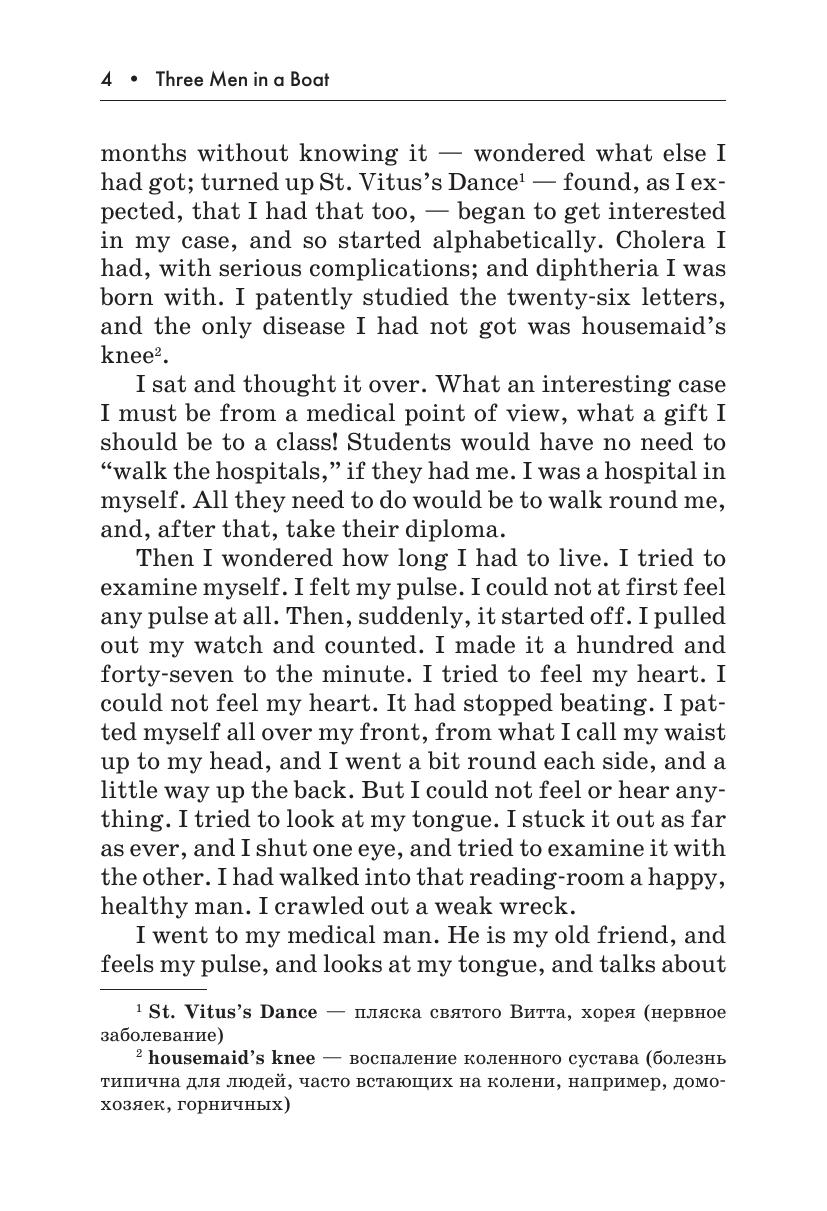 В данном издании вниманию читателя предлагается адаптированная и сокращенная версия известнейшей повести Джерома К. Джерома «Трое в лодке, не считая собаки». Автор описывает приключения троих друзей и их пса, отправившихся в путешествие на лодке по реке Темзе. Книга остается любимой поколениями читателей благодаря искрометному юмору Джерома.