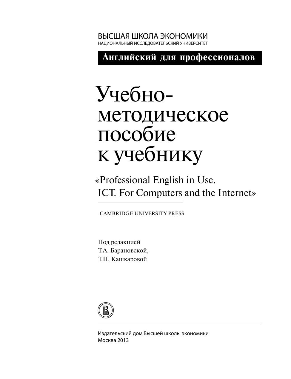 Учебно-методическое пособие к учебнику «Professional English in Use. ICT. For Computers and the Internet»