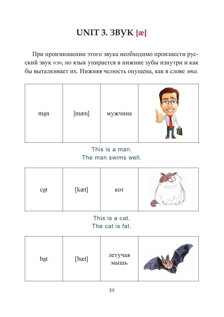 Пособие состоит из 37 параграфов, каждый из которых в интересной игровой форме представляет определенный звук. В параграф включены таблицы, картинки и маленькие стишки по данному звуку. В конце параграфа дается обязательное упражнение с транскрипцией на отработку звука и представлен словарь, который необходимо освоить, и лишь потом двигаться дальше.