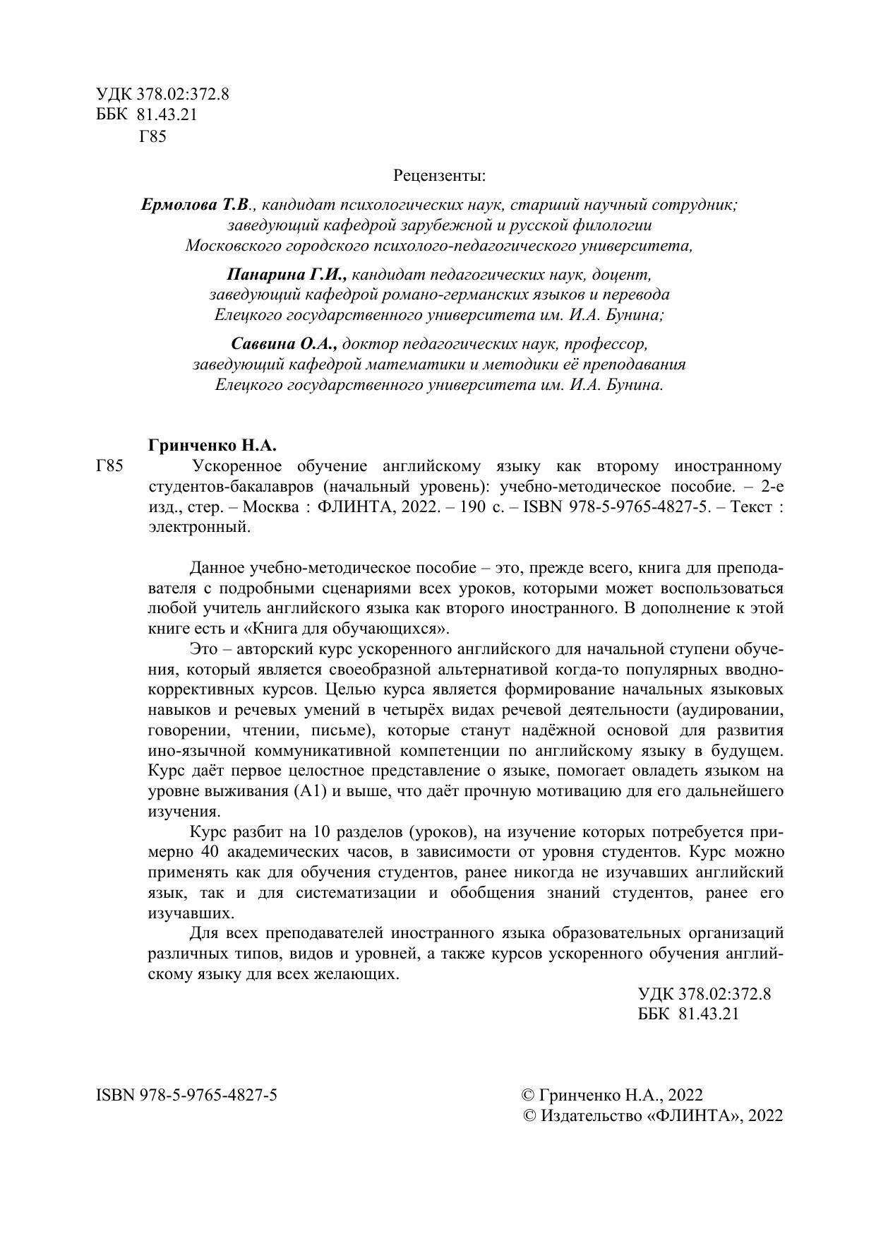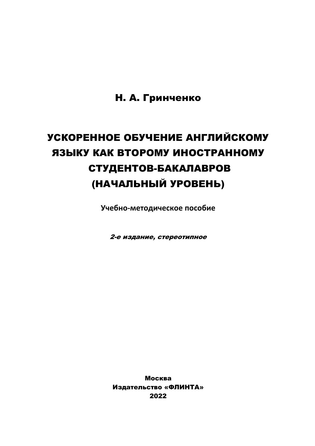 Ускоренное обучение англ.яз. как второму иностранному студентов-бакалавров (начальный уровень) (книга для обучающихся)