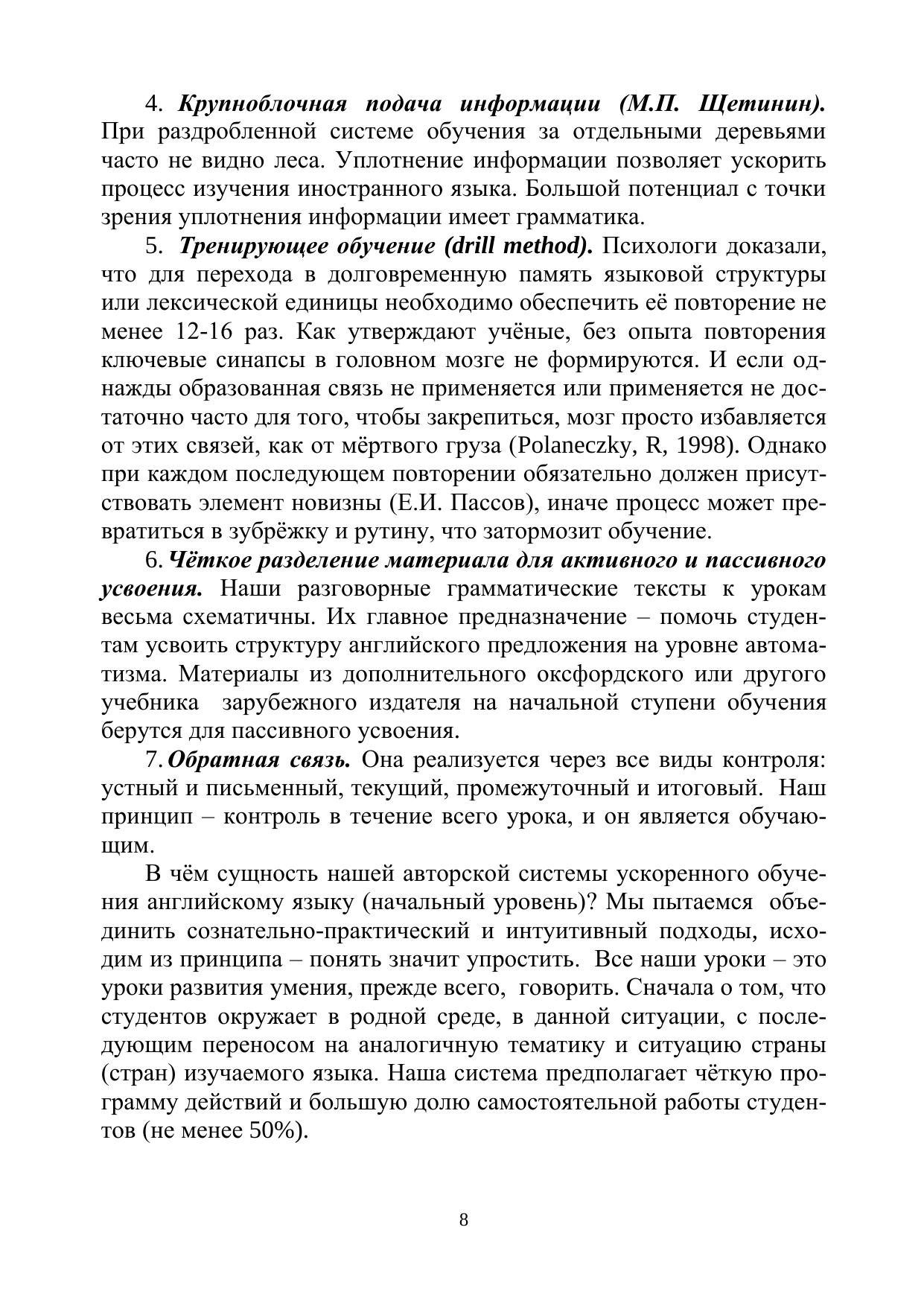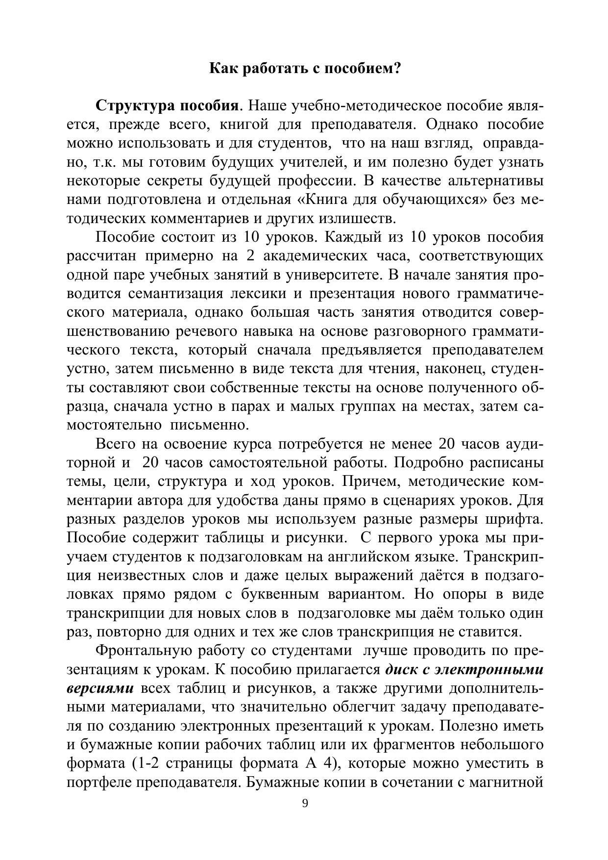 Учебно-методическое пособие «Ускоренное обучение английскому языку как второму иностранному студентов-бакалавров (начальный уровень)» - это, прежде всего, книга для преподавателя с подробными сценариями всех уроков, которыми может воспользоваться любой учитель английского языка как второго иностранного. В дополнение к этой книге есть и «Книга для обучающихся».