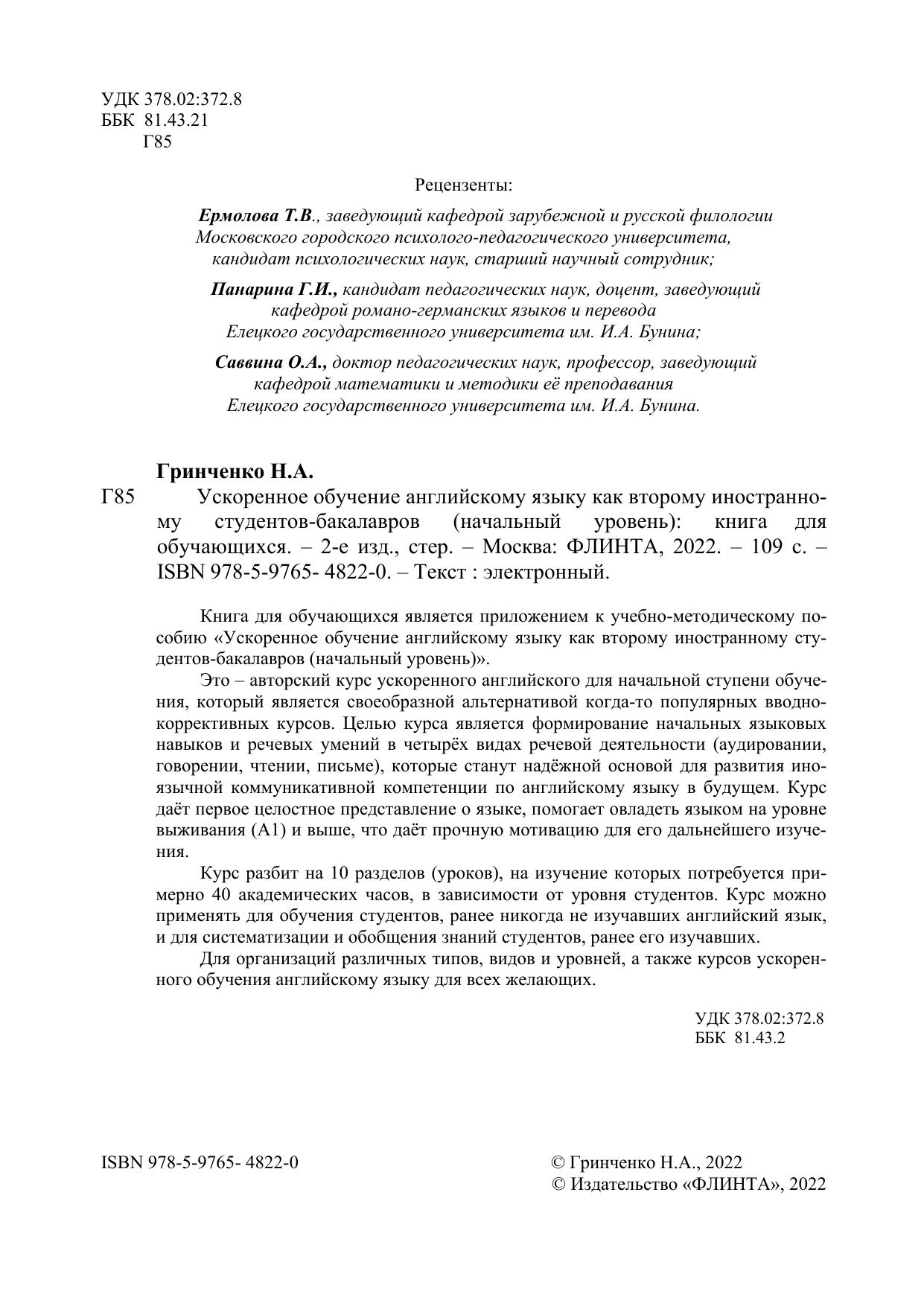 Книга для обучающихся является приложением к учебно-методическому пособию «Ускоренное обучение английскому языку как второму иностранному студентов-бакалавров (начальный уровень)».