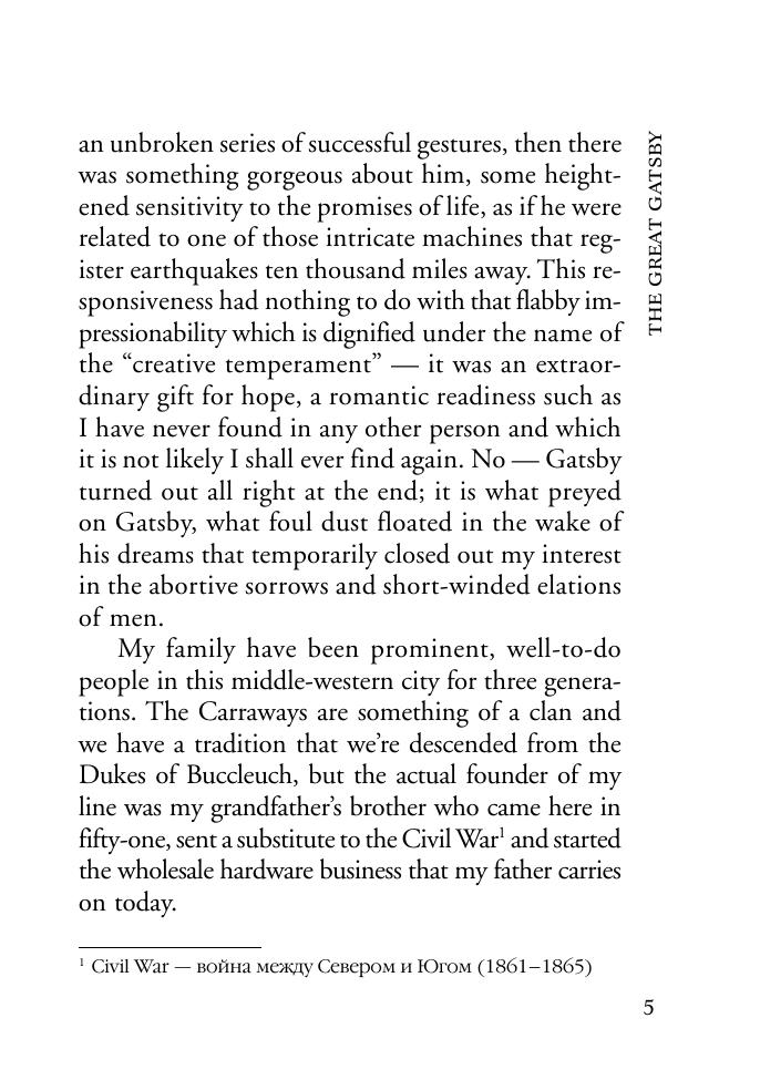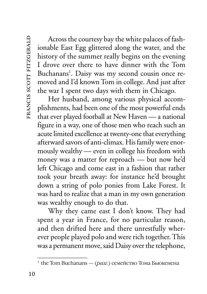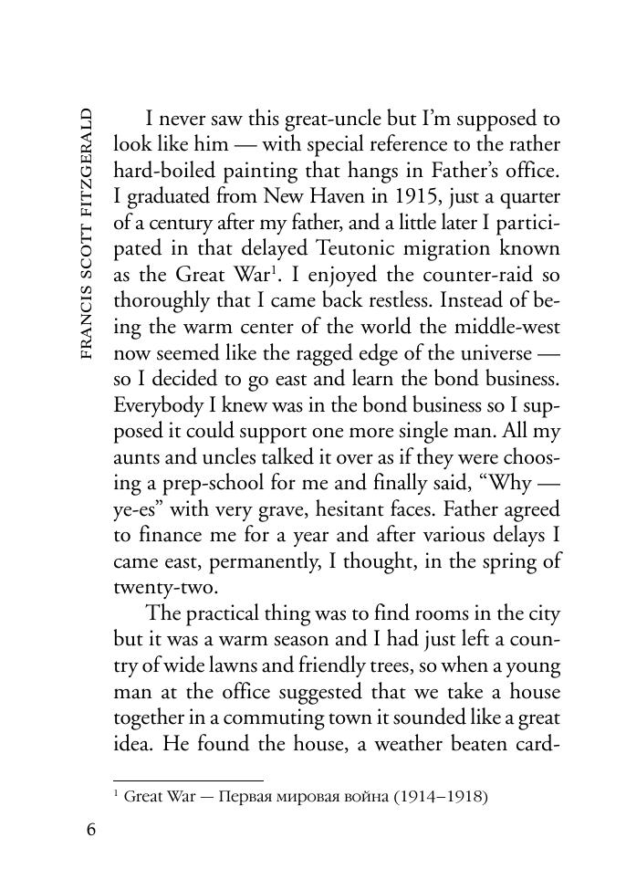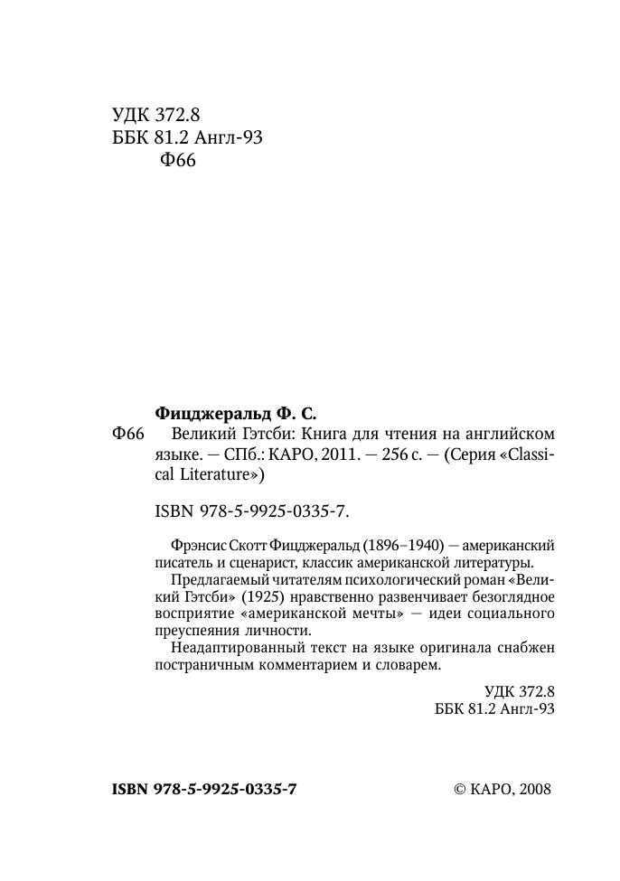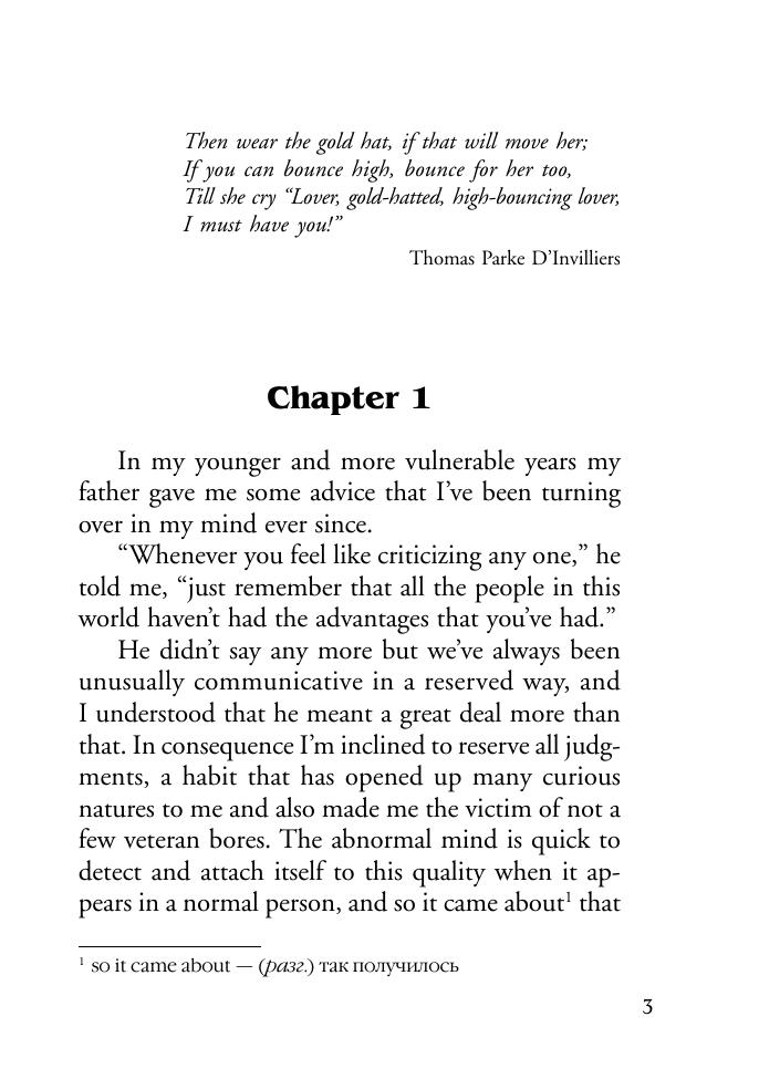 Фрэнсис Скотт Фицджеральд (1896–1940) — американский писатель и сценарист, классик американской литературы.Предлагаемый читателям психологический роман «Великий Гэтсби» (1925) нравственно развенчивает безоглядное восприятие «американской мечты» — идеи социального преуспеяния личности.Неадаптированный текст на языке оригинала снабжен постраничным комментарием и словарем.