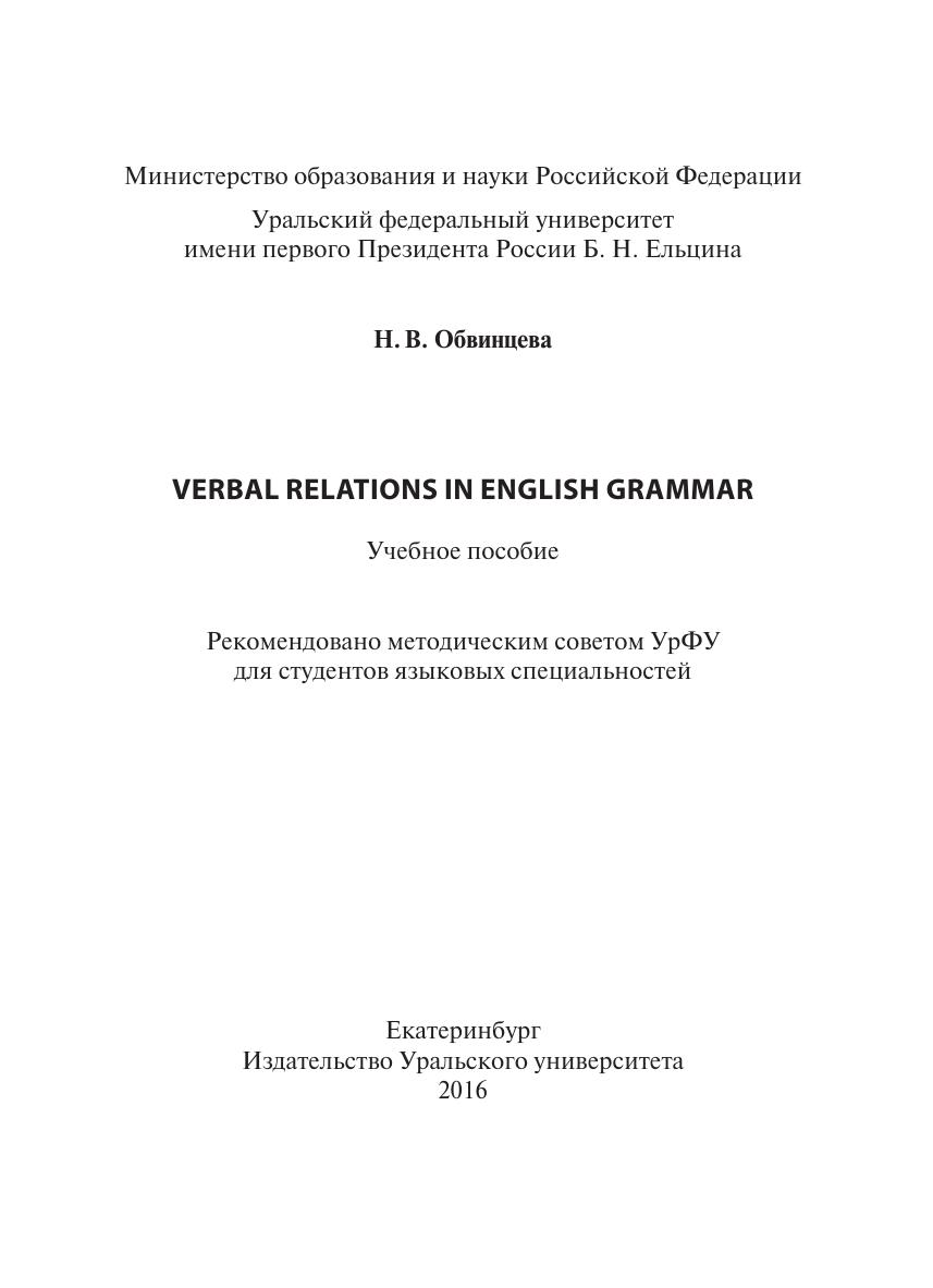 Verbal Relations in English Grammar: учебное пособие