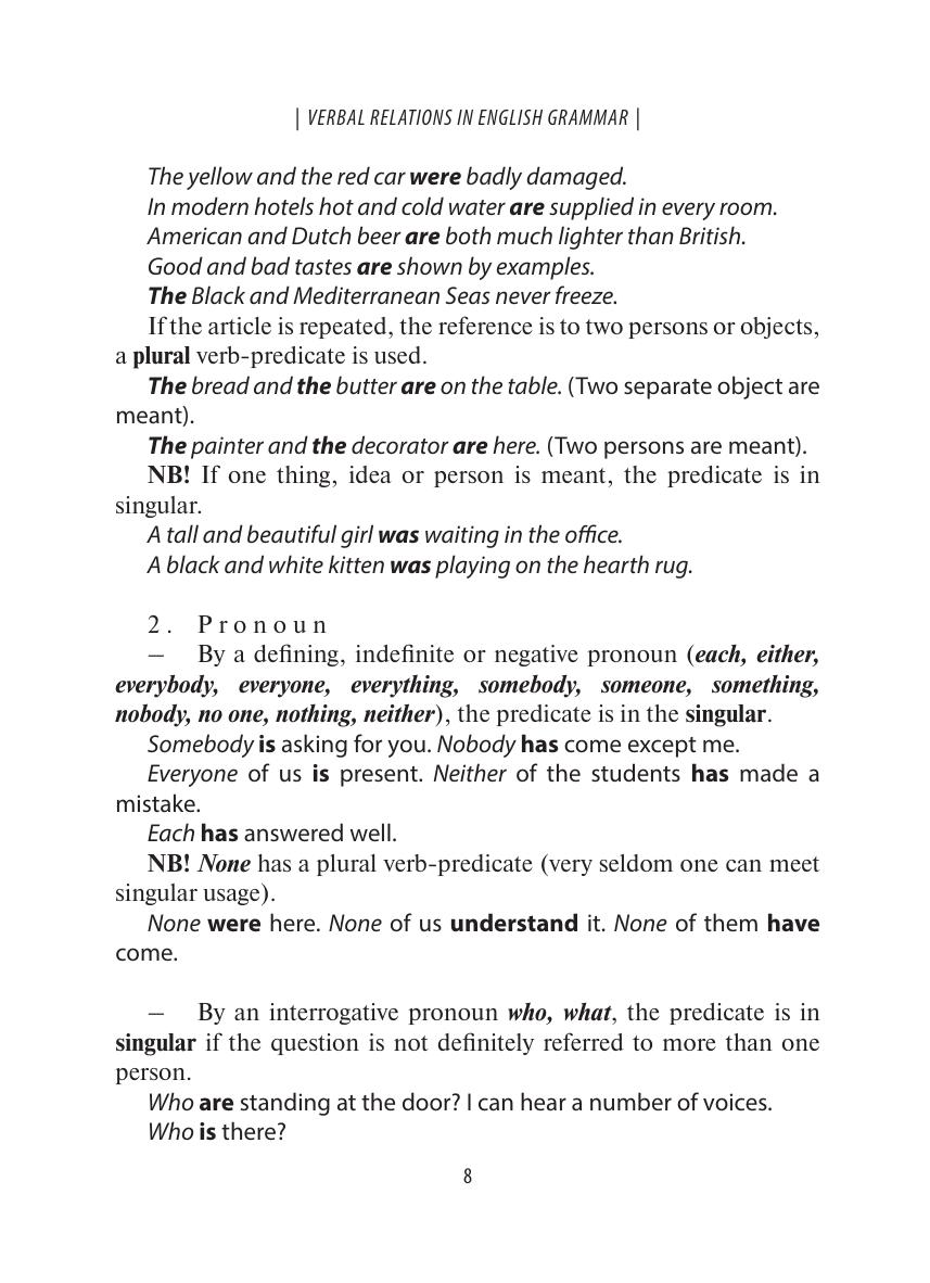 Пособие детально описывает наиболее сложные вопросы грамматики английского языка: глагол и его функционирование в предложении. Пособие состоит из двух частей — «Отношения в предложении» и «Личные формы глагола». Книга предназначена для широкого круга читателей: для студентов и преподавателей языковых учебных заведений, а также для всех, кто изучает английский язык самостоятельно.
