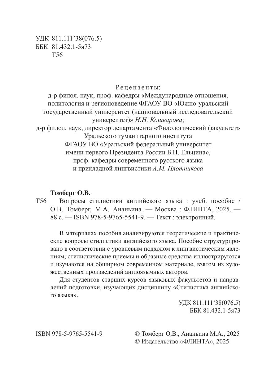 Для студентов старших курсов языковых факультетов и направлений подготовки, изучающих дисциплину «Стилистика английского языка».