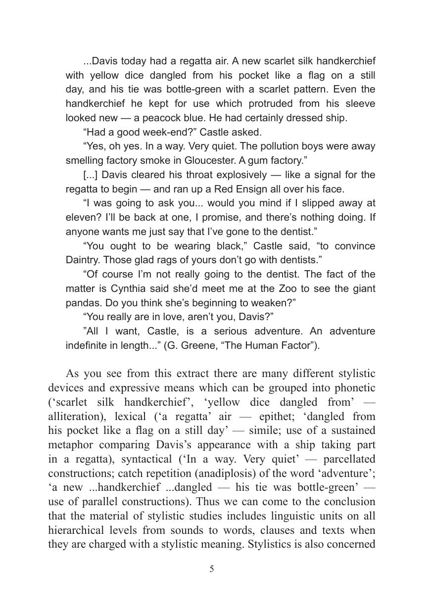 В материалах пособия анализируются теоретические и практические вопросы стилистики английского языка. Пособие структурировано в соответствии с уровневым под ходом к лингвистическим явлениям; стилистические приемы и об разные средства иллюстрируются и изучаются на обширном со вре менном материале, взятом из художественных произведений англо язычных авторов.