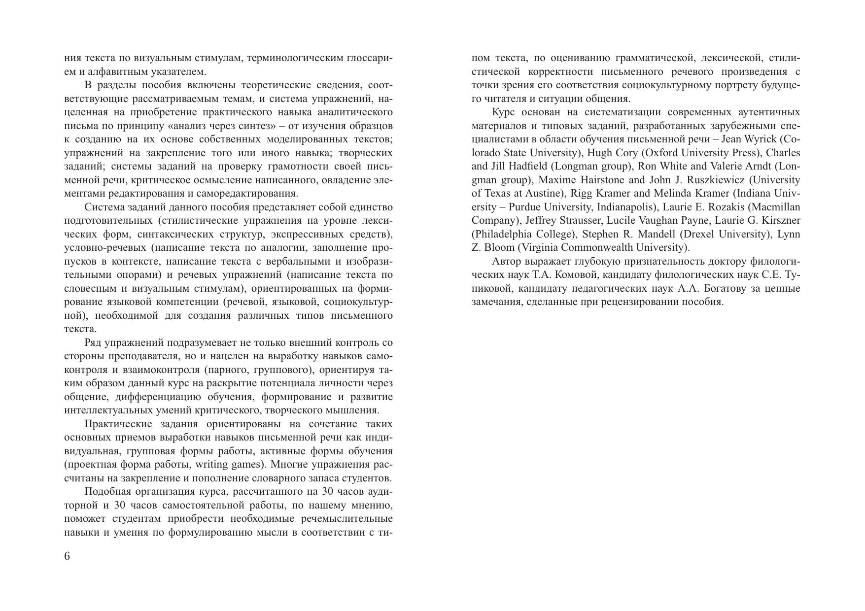 Пособие предназначено для совершенствования навыков английской письменной речи и ставит своей целью более детально ознакомить студентов старших курсов языковых вузов с особенностями стилистики письменной речи, сформировать языковую компетенцию, позволяющую правильно оформить работу в лексическом, синтаксическом, стилевом отношениях, использовать выработанные навыки и умения в ситуациях, когда письменная речь является необходимой и востребованной. В разделы пособия включены теоретические сведения, соответствующие рассматриваемым темам, и система упражнений, нацеленная на приобретение практического навыка аналитического письма. Для студентов старших курсов факультетов иностранных языков, преподавателей и всех изучающих английский язык.