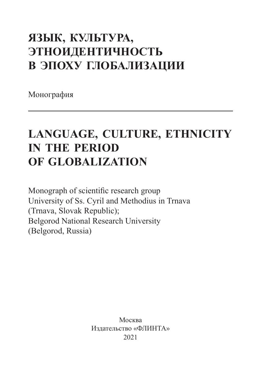 Язык, культура, этноидентичность в эпоху глобализации = Language, Culture, Ethnicity in the period of Globalization