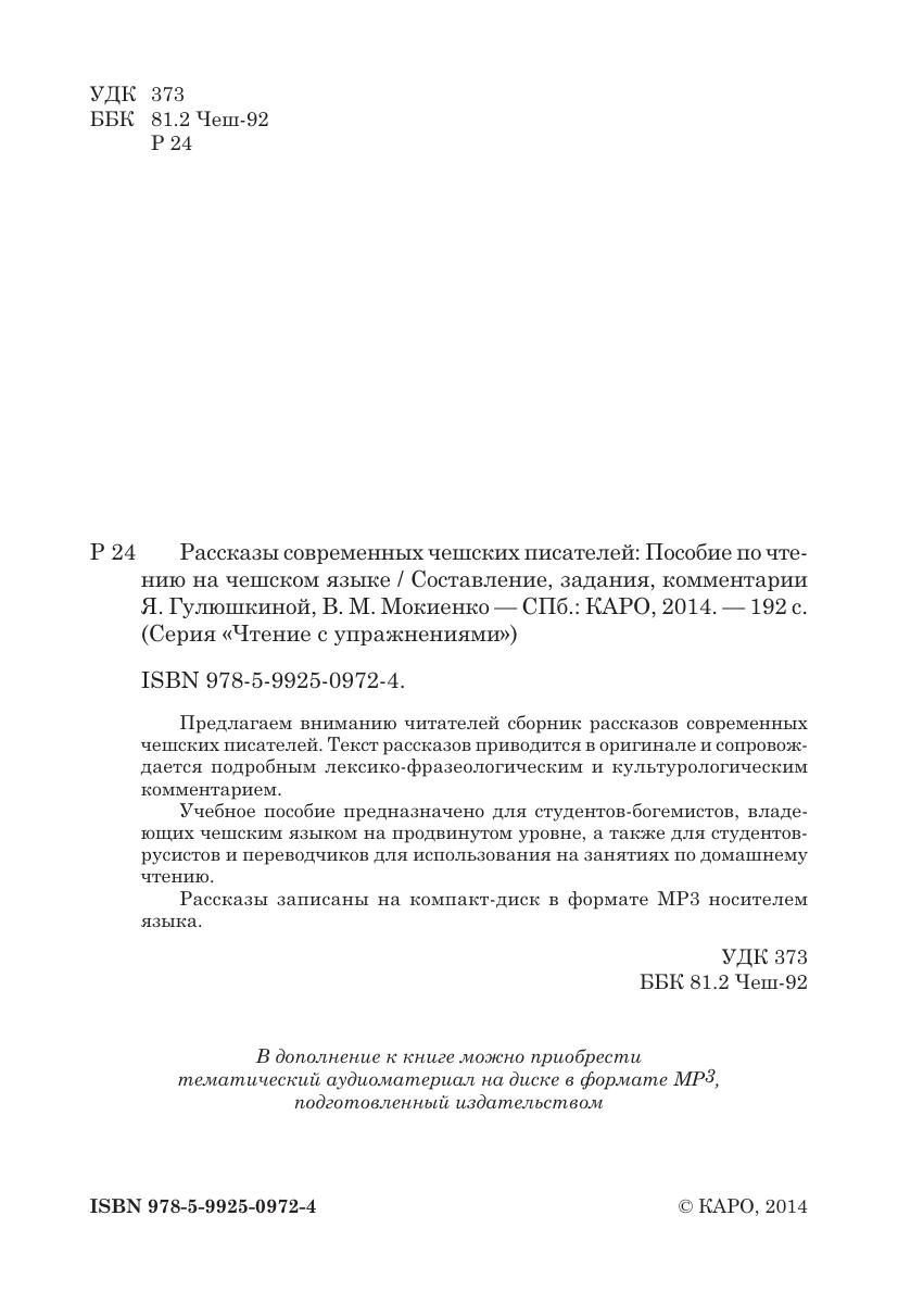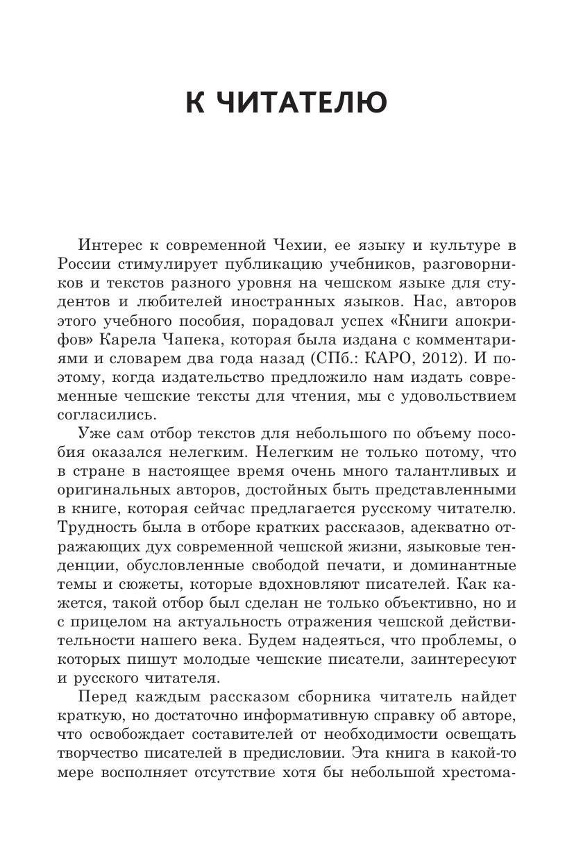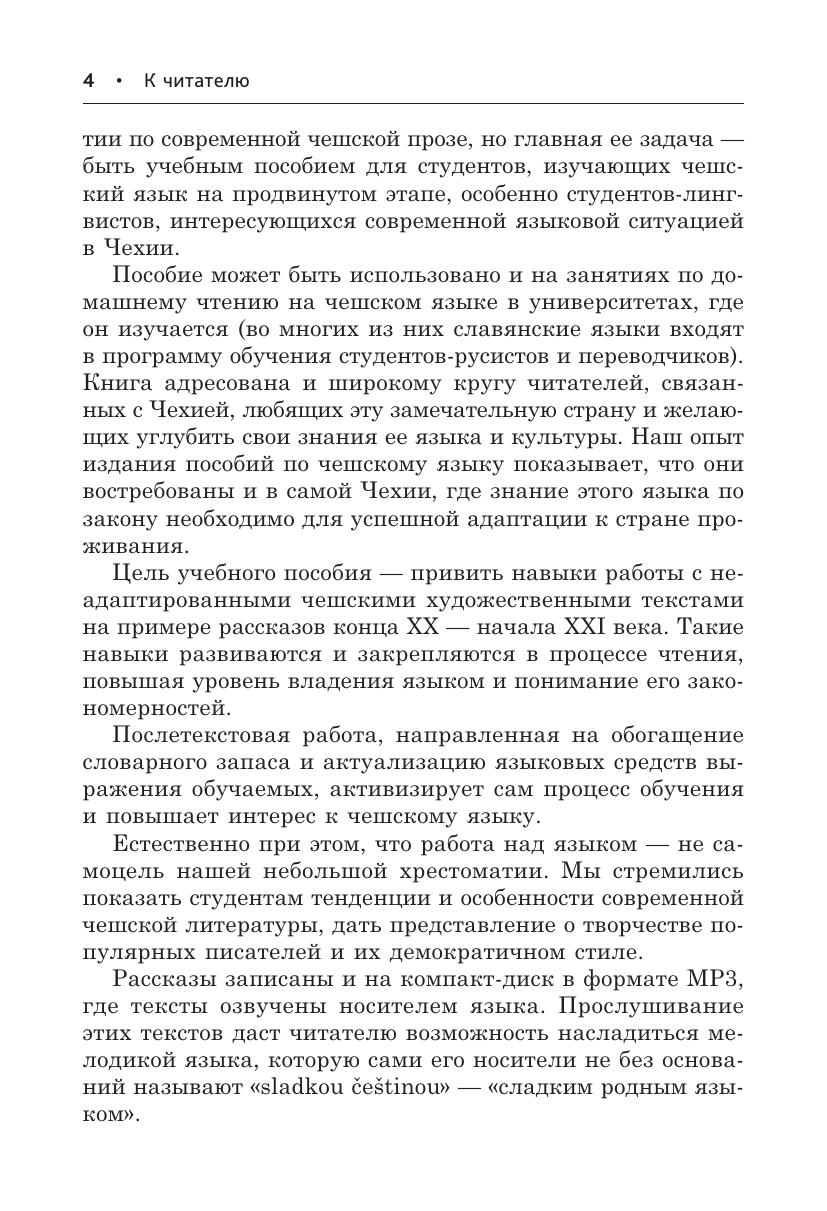 Учебное пособие предназначено для студентов-богемистов, владеющих чешским языком на продвинутом уровне, а также для студентов-русистов и переводчиков для использования на занятиях по домашнему чтению.