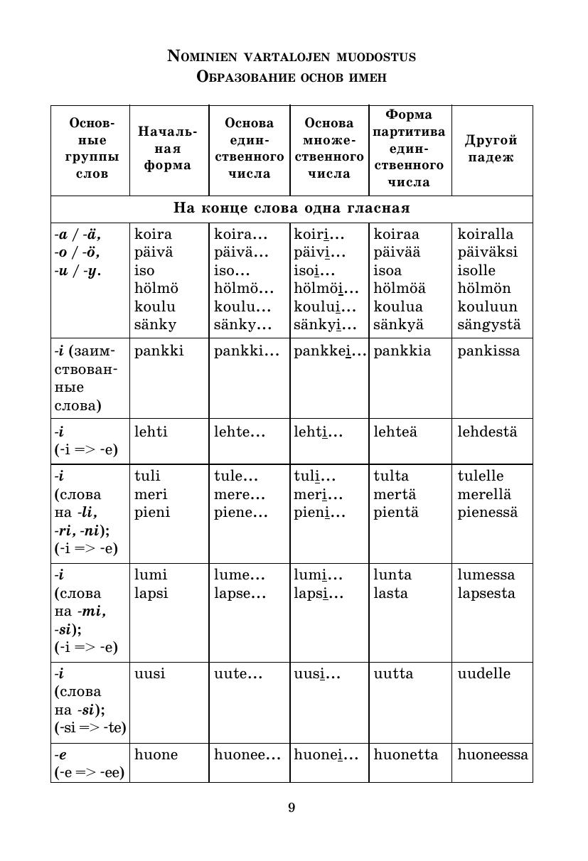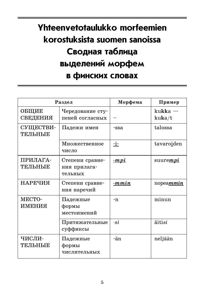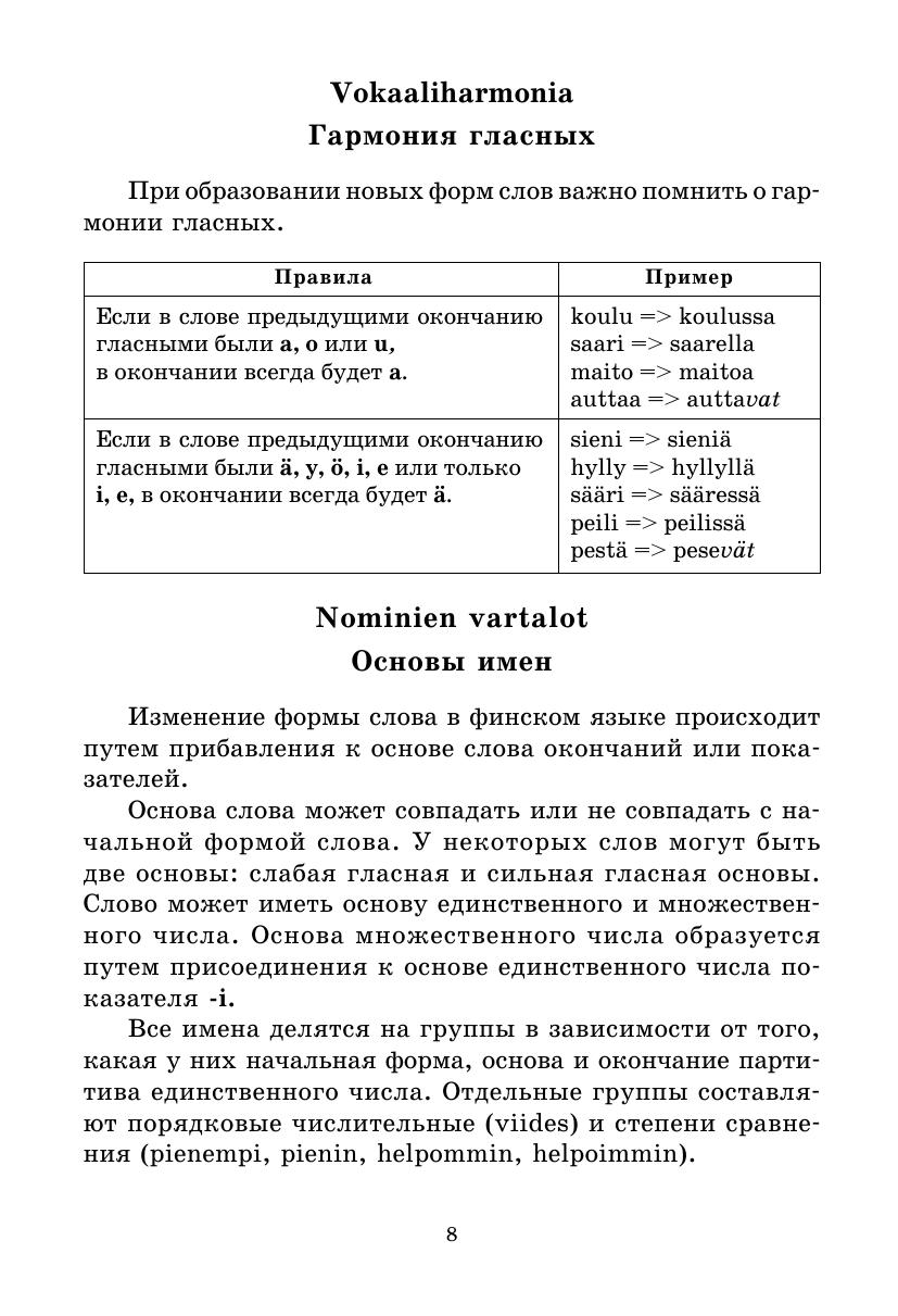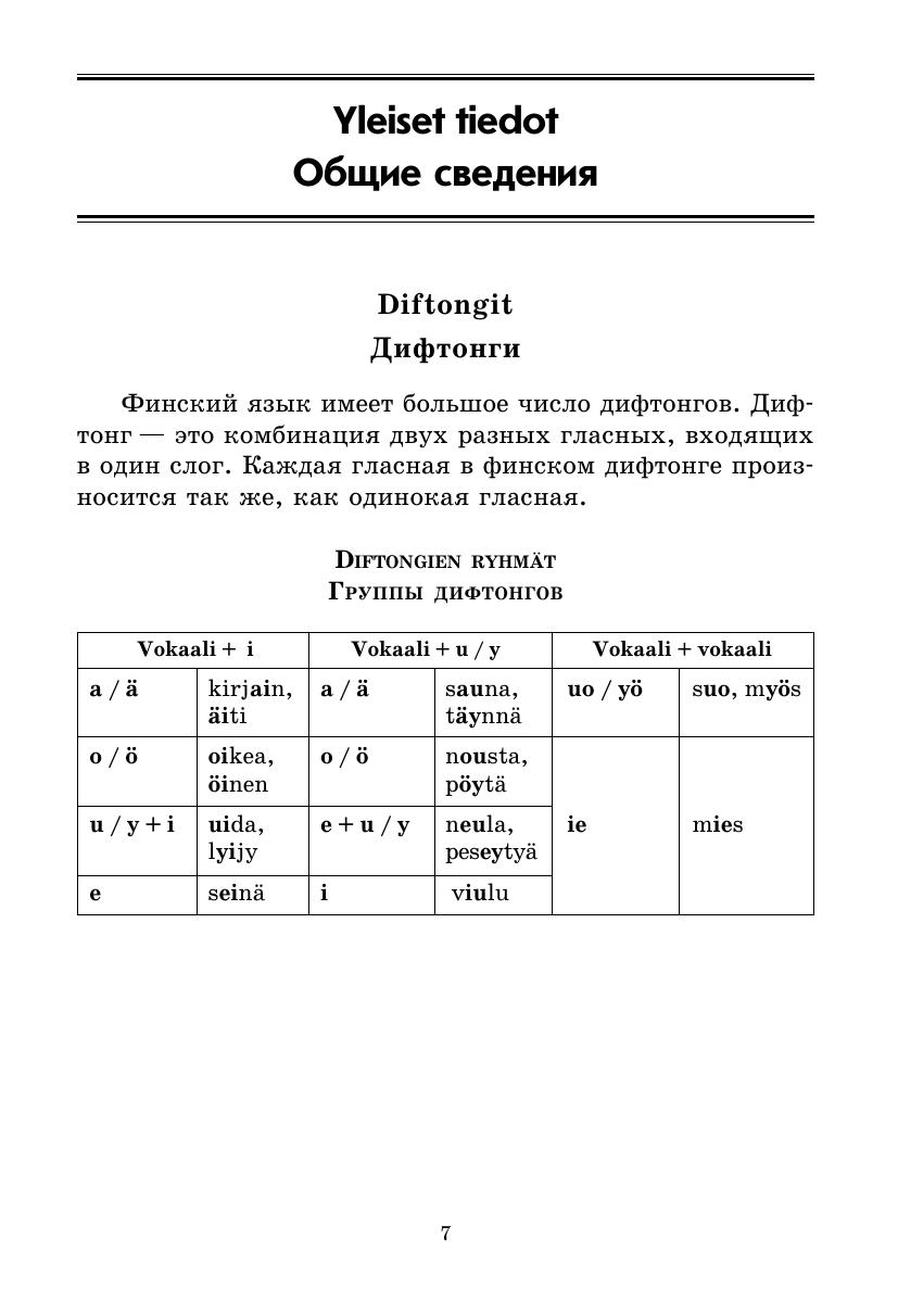 Данное справочное пособие предназначено для широкого круга читателей. Оно призвано помочь изучающим финский язык систематизировать и структурировать знания по грамматике. Основные грамматические правила представлены наглядно — в виде таблиц, схем и кратких пояснений. Все объяснения даются на русском языке, что делает возможным использование пособия на разных этапах изучения языка. Кроме грамматики освещаются и некоторые лексические трудности, с которыми часто приходится сталкиваться учащимся.
