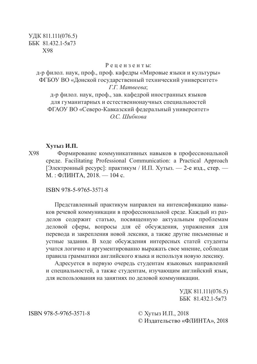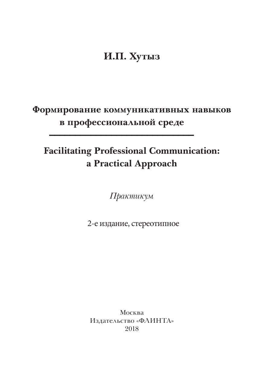 Формирование коммуникативных навыков в профессиональной среде. Facilitating Professional Communication: a Practical Approach: практикум