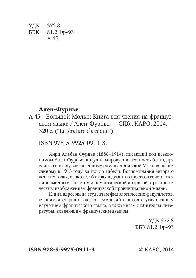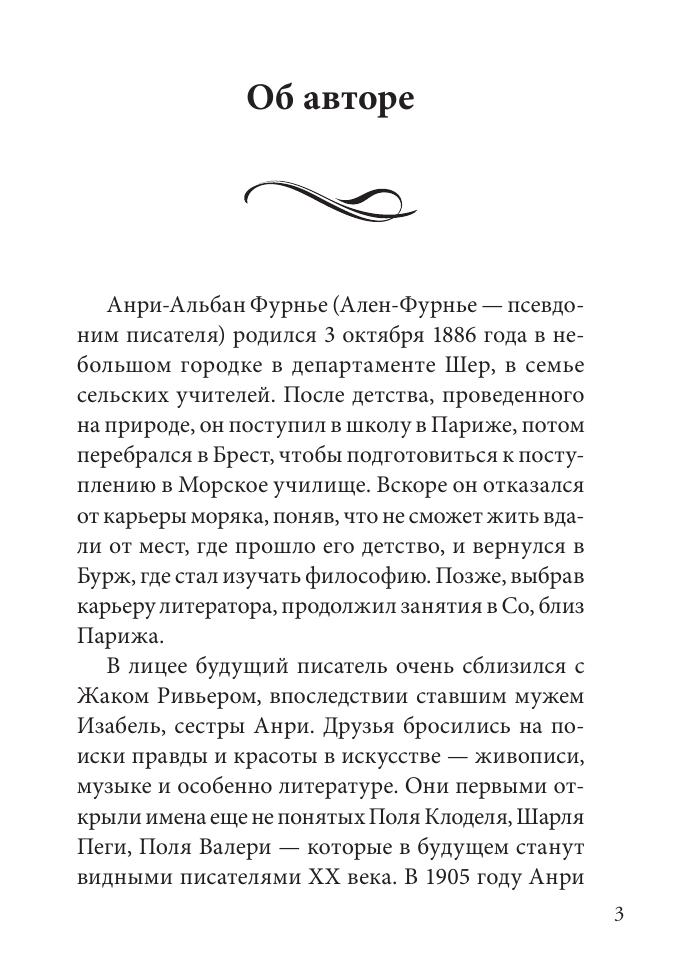 Анри Альбан Фурнье (1886–1914), писавший под псевдонимом Ален-Фурнье, получил мировую известность благодаря единственному завершенному роману «Большой Мольн», написанному в 1913 году, за год до гибели. Воспоминания автора о детских годах, о школе, об играх и думах подростков сочетаются с динамичным сюжетом и романтической интригой, с реалистическим изображением французской провинциальной жизни.
