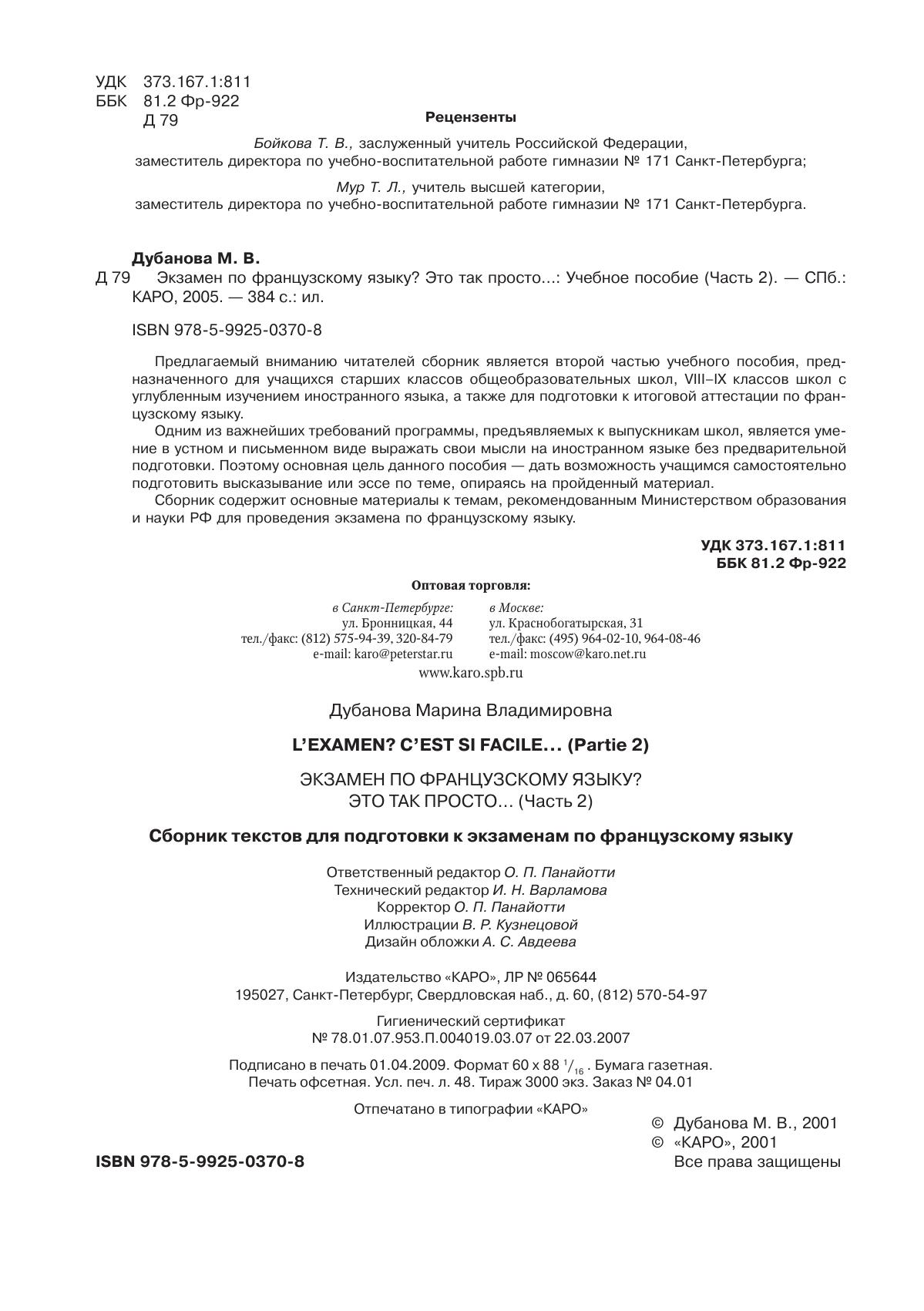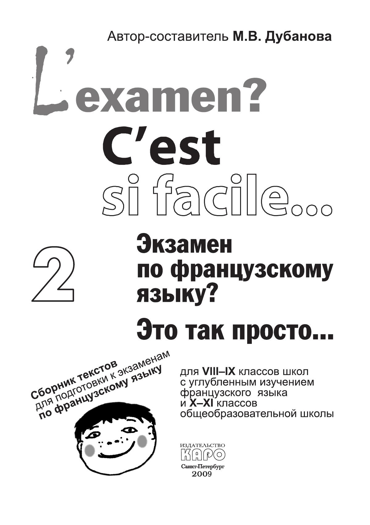 Предлагаемый вниманию читателей сборник является второй частью учебного пособия, предназначенного для учащихся старших классов общеобразовательных школ, VIII–IX классов школ с углубленным изучением иностранного языка, а также для подготовки к итоговой аттестации по французскому языку.
