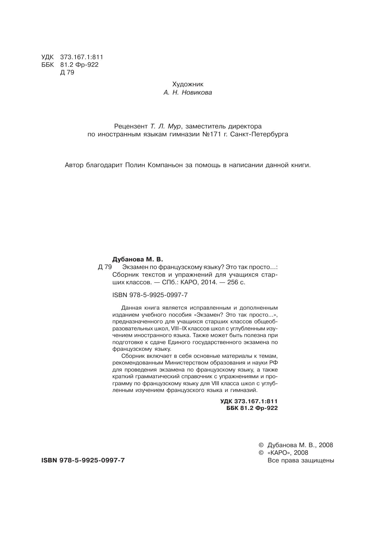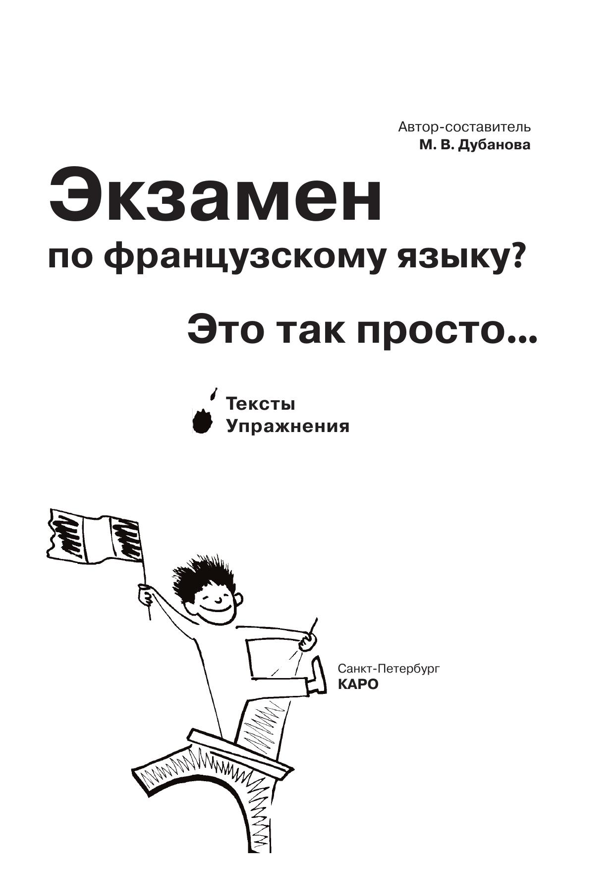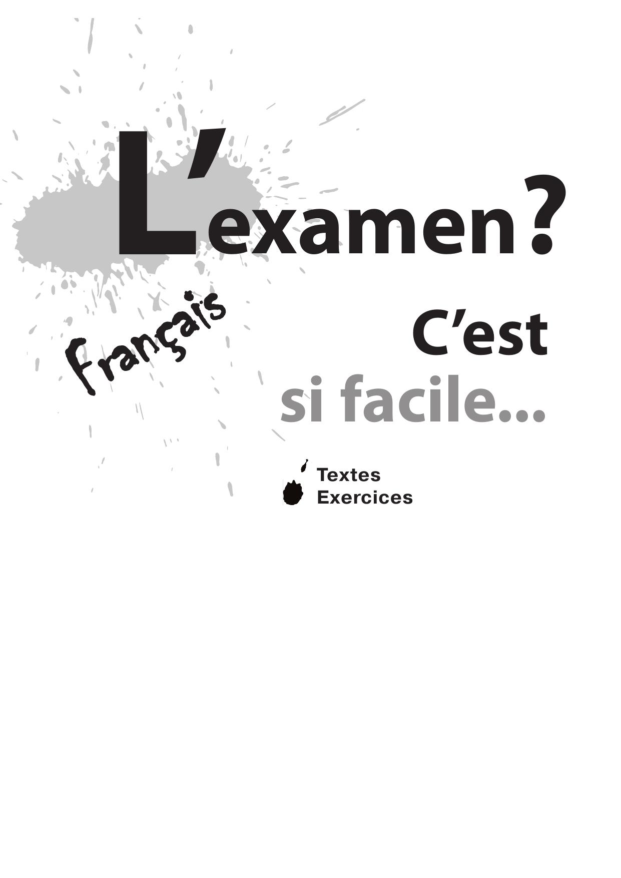 Данная книга является исправленным и дополненным изданием учебного пособия «Экзамен? Это так просто…», предназначенного для учащихся старших классов общеобразовательных школ, VIII–IX классов школ с углубленным изучением иностранного языка. Также может быть полезна при подготовке к сдаче Единого государственного экзамена по французскому языку.