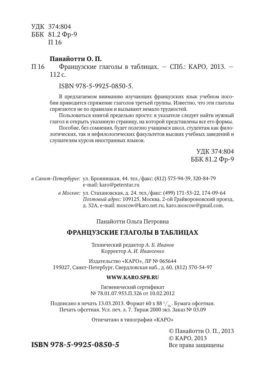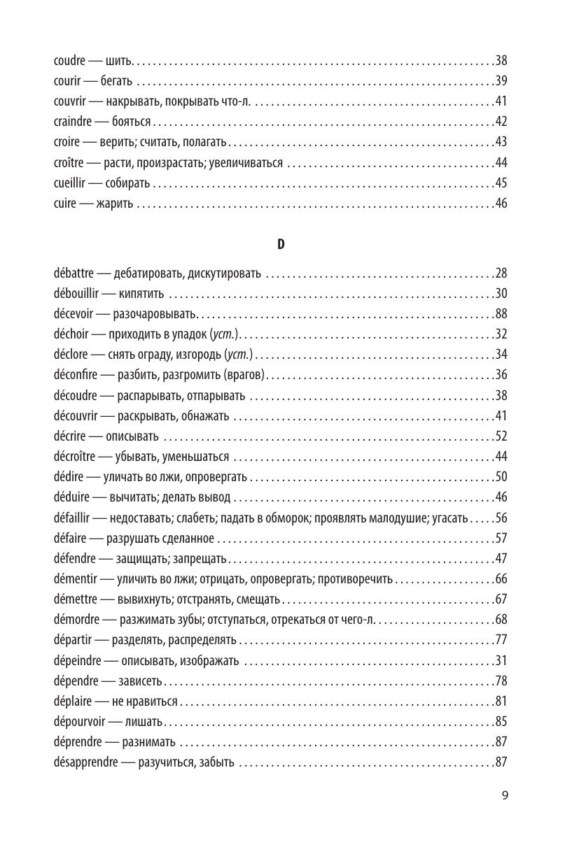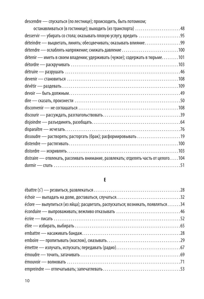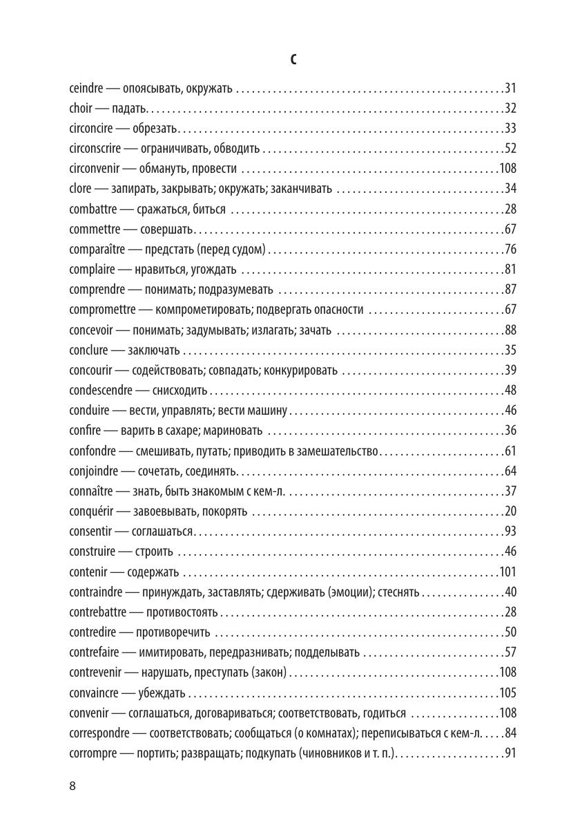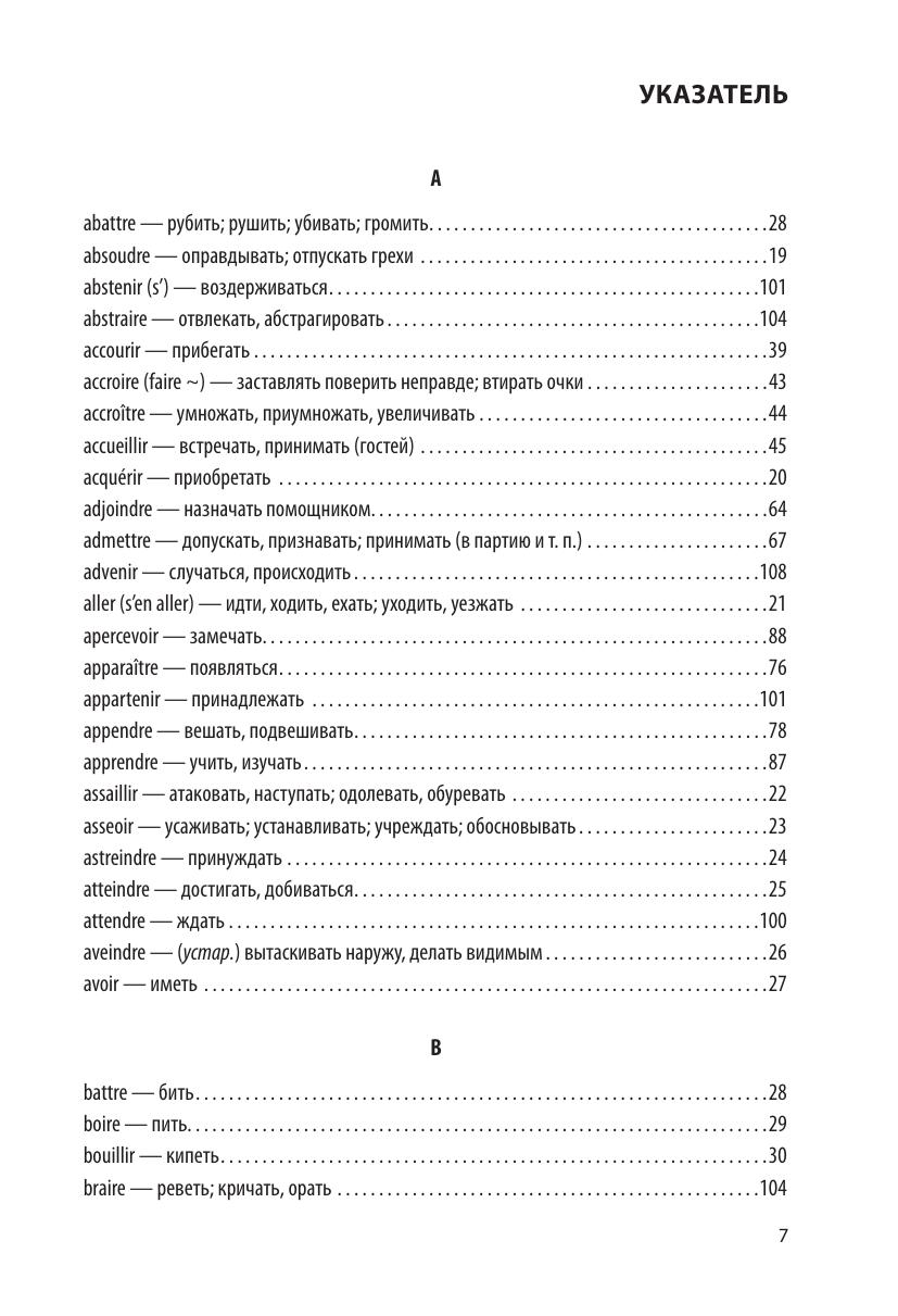 В предлагаемом вниманию изучающих французских язык учебном пособии приводится спряжение глаголов третьей группы. Известно, что эти глаголы спрягаются не по правилам и вызывают немало трудностей. Пользоваться книгой предельно просто: в указателе следует найти нужный глагол и открыть указанную страницу, на которой представлены все его формы. Пособие, без сомнения, будет полезно учащимся школ, студентам как филологических, так и нефилологических факультетов высших учебных заведений и слушателям курсов иностранных языков.