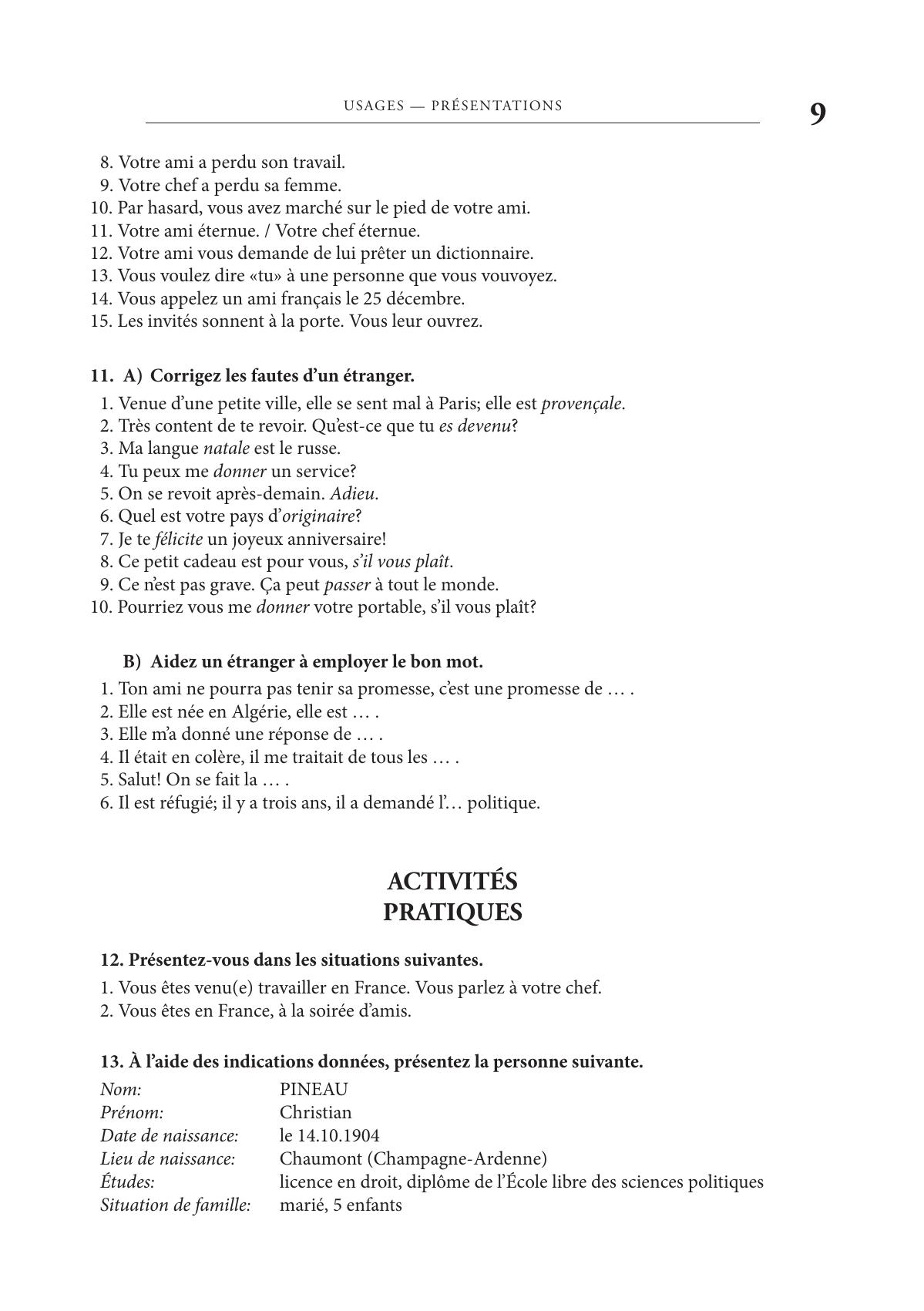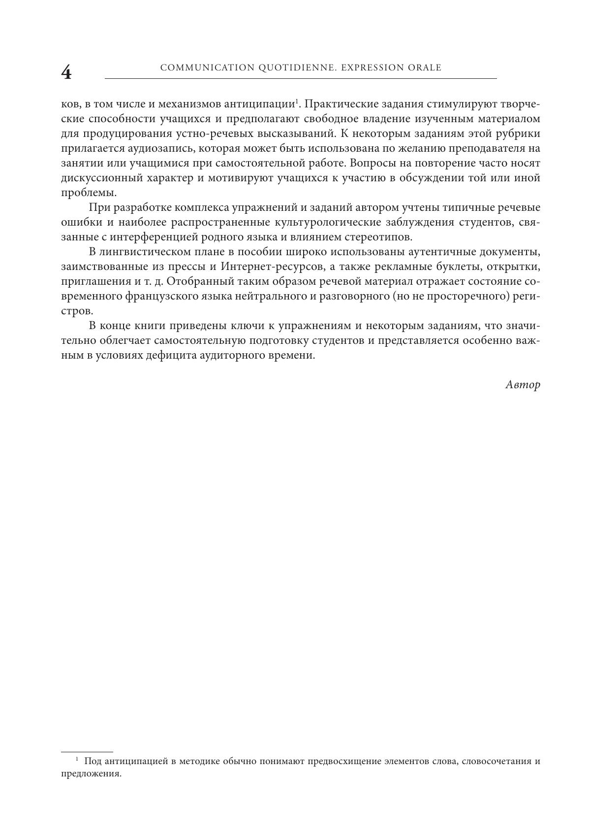 Предлагаемая книга представляет собой сборник упражнений и заданий, направленных на формирование у учащихся речевых умений и социокультурных знаний, необходимых для осуществления устного повседневного общения. Материал, подлежащий усвоению, организован в 35 глав по тематическому принципу.Книга предназначена, главным образом, для студентов младших курсов языковых вузов, но может оказаться интересной для учащихся старших классов школ с углубленным изучением французского языка, а также для широкого круга читателей.