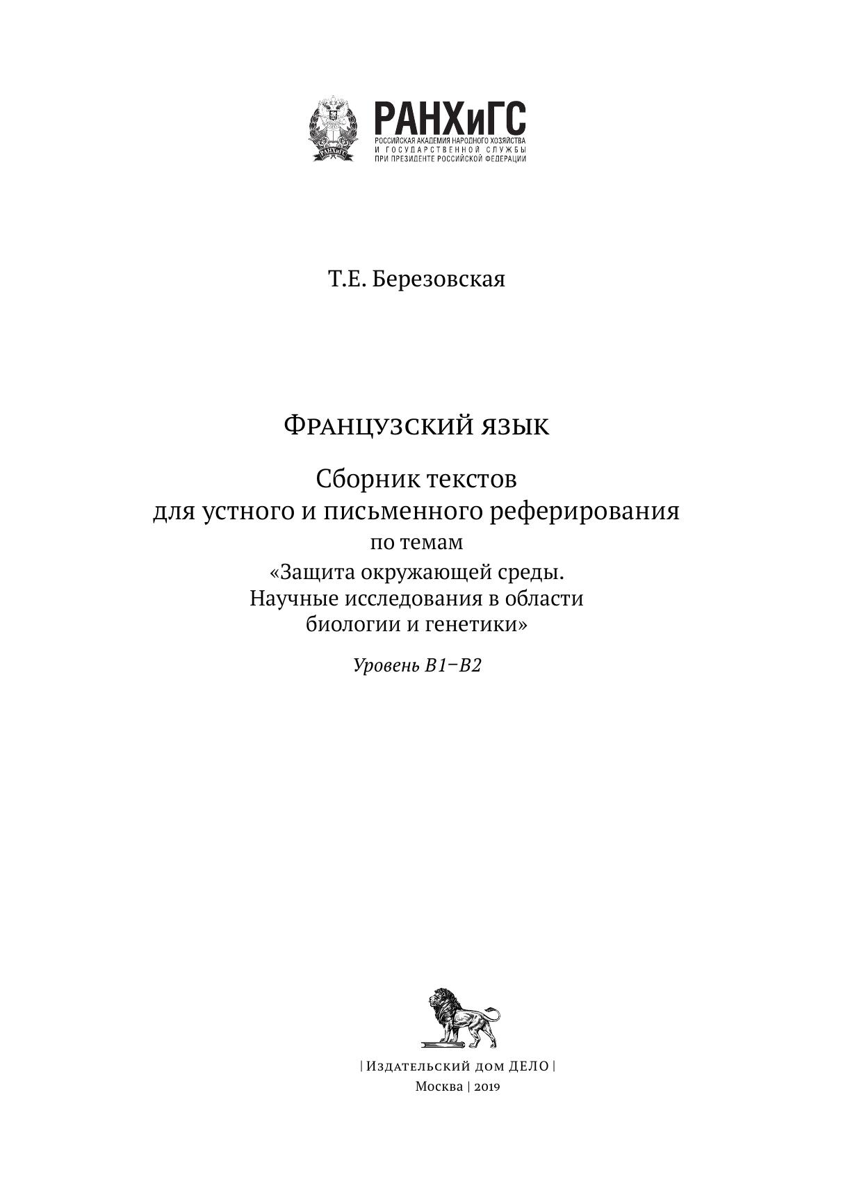 Французский язык. Сборник текстов для устного и письменного реферирования по темам «Защита окружающей среды. Научные исследования в области биологии и генетики». Уровень В1-В2