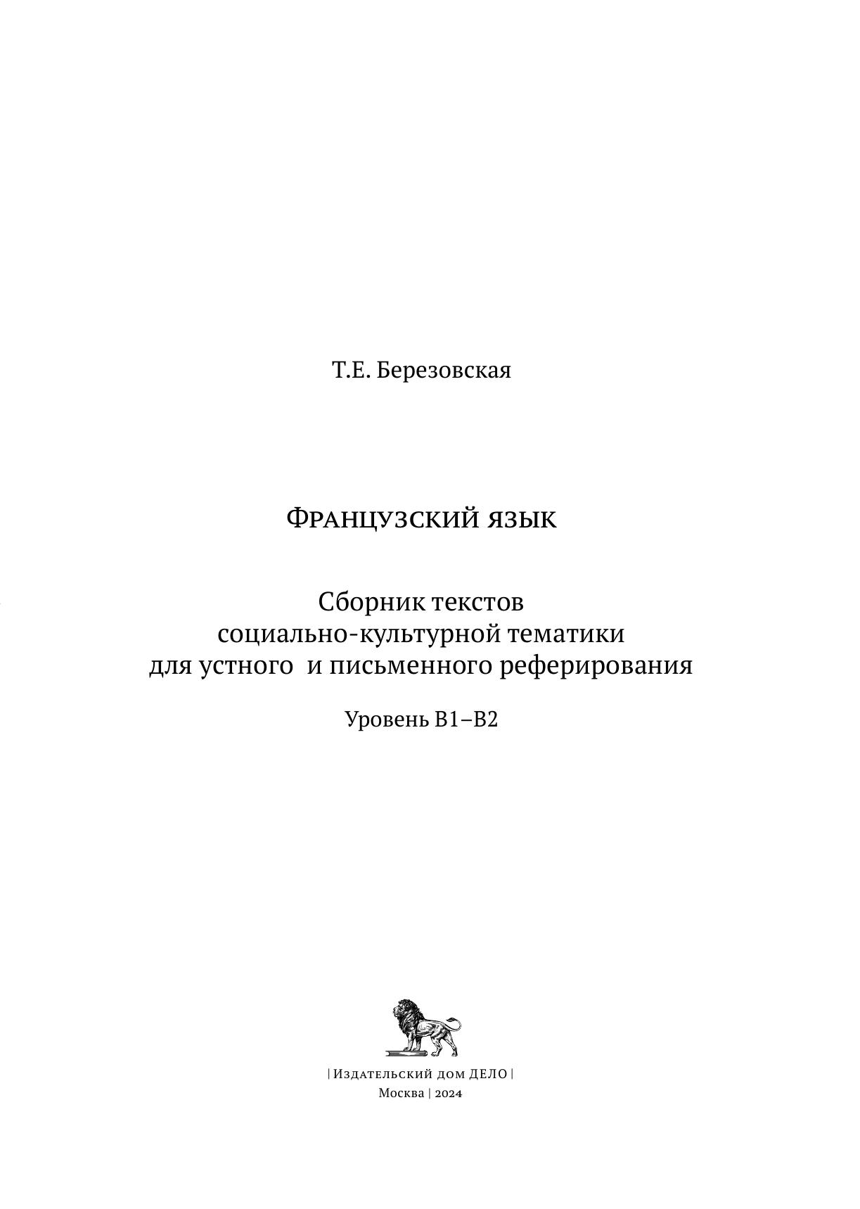 Французский язык. Сборник текстов социально-культурной тематики для устного и письменного реферирования. Уровень В1–В2