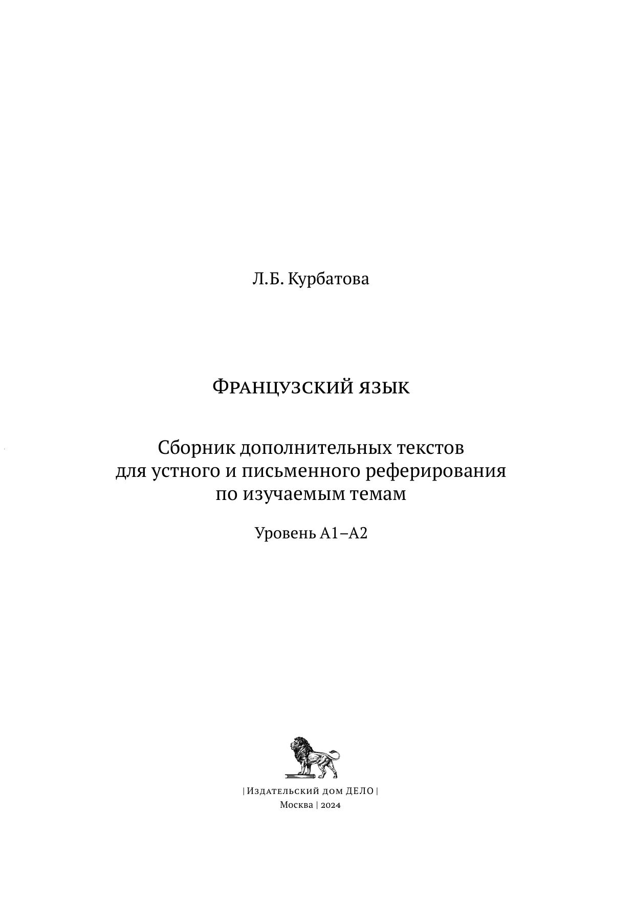 Французский язык. Сборник дополнительных текстов для устного и письменного реферирования. Уровень А1–А2