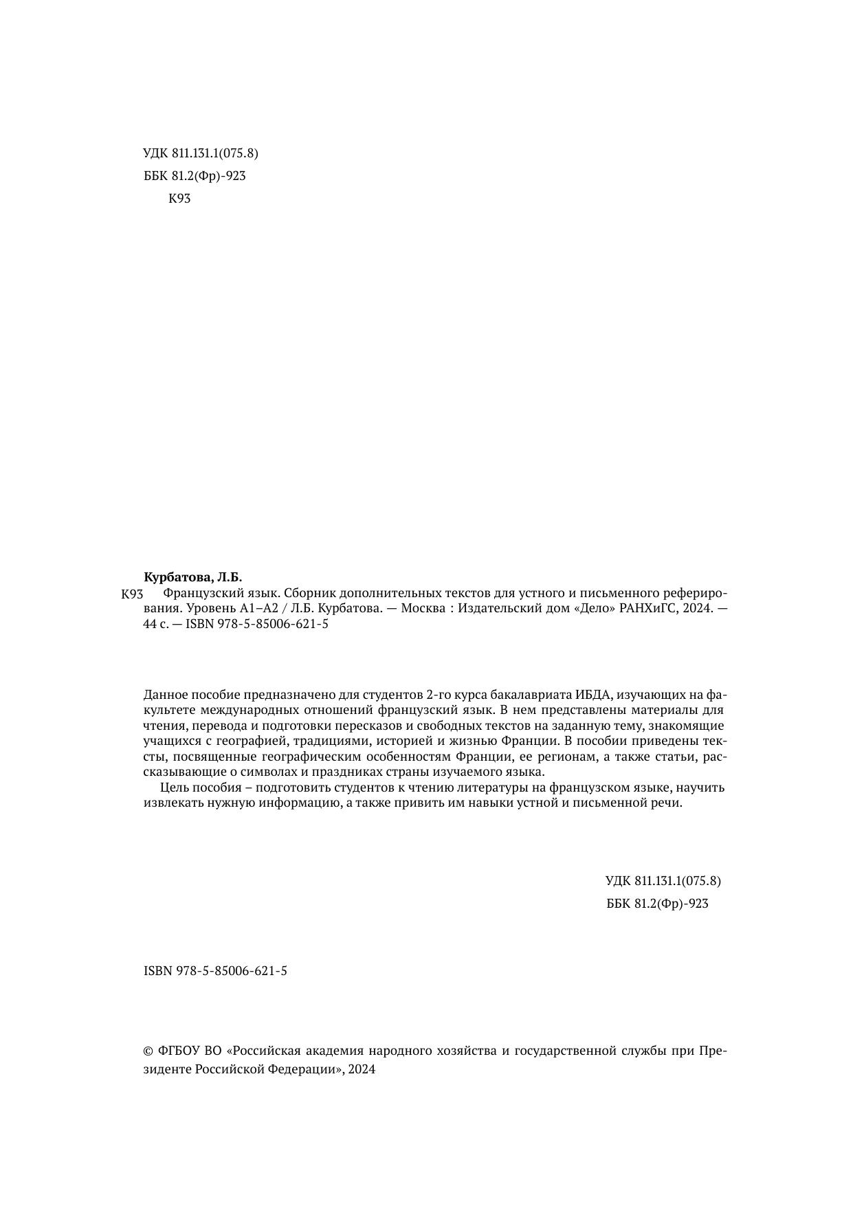 Данное пособие предназначено для студентов 2-го курса бакалавриата ИБДА, изучающих на факультете международных отношений французский язык. В нем представлены материалы для чтения, перевода и подготовки пересказов и свободных текстов на заданную тему, знакомящие учащихся с географией, традициями, историей и жизнью Франции. В пособии приведены тексты, посвященные географическим особенностям Франции, ее регионам, а также статьи, рассказывающие о символах и праздниках страны изучаемого языка. Цель пособия – подготовить студентов к чтению литературы на французском языке, научить извлекать нужную информацию, а также привить им навыки устной и письменной речи.