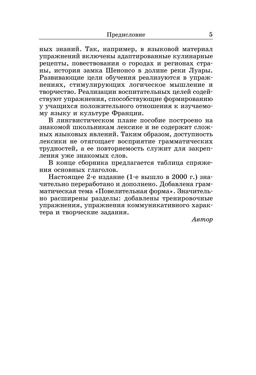 Настоящее учебное пособие представляет собой сборник упражнений по грамматике и предназначено, прежде всего, для учащихся 6–9 классов средних школ, в которых французский язык не является профилирующим предметом. Тем не менее пособие может быть использовано в качестве дополнительного материала в различных условиях обучения французскому языку.Пособие преследует практические, общеобразовательные, развивающие и воспитательные цели. Основная практическая цель заключается в формировании и развитии грамматических навыков и умений школьника. Пособие построено на знакомой школьникам лексике, что не отягощает восприятие грамматических явлений, а повторяемость лексических единиц способствует закреплению уже знакомых слов.Настоящее 2-е издание значительно переработано и дополнено.