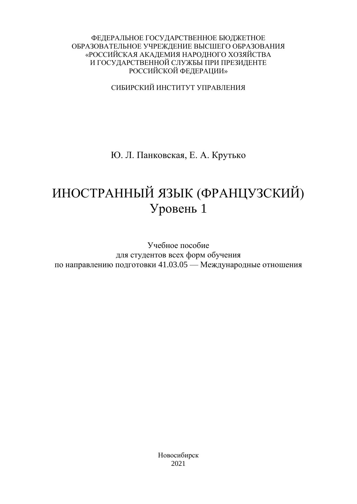 Иностранный язык (французский). Уровень 1