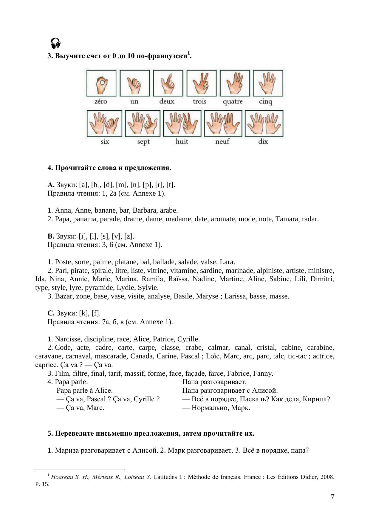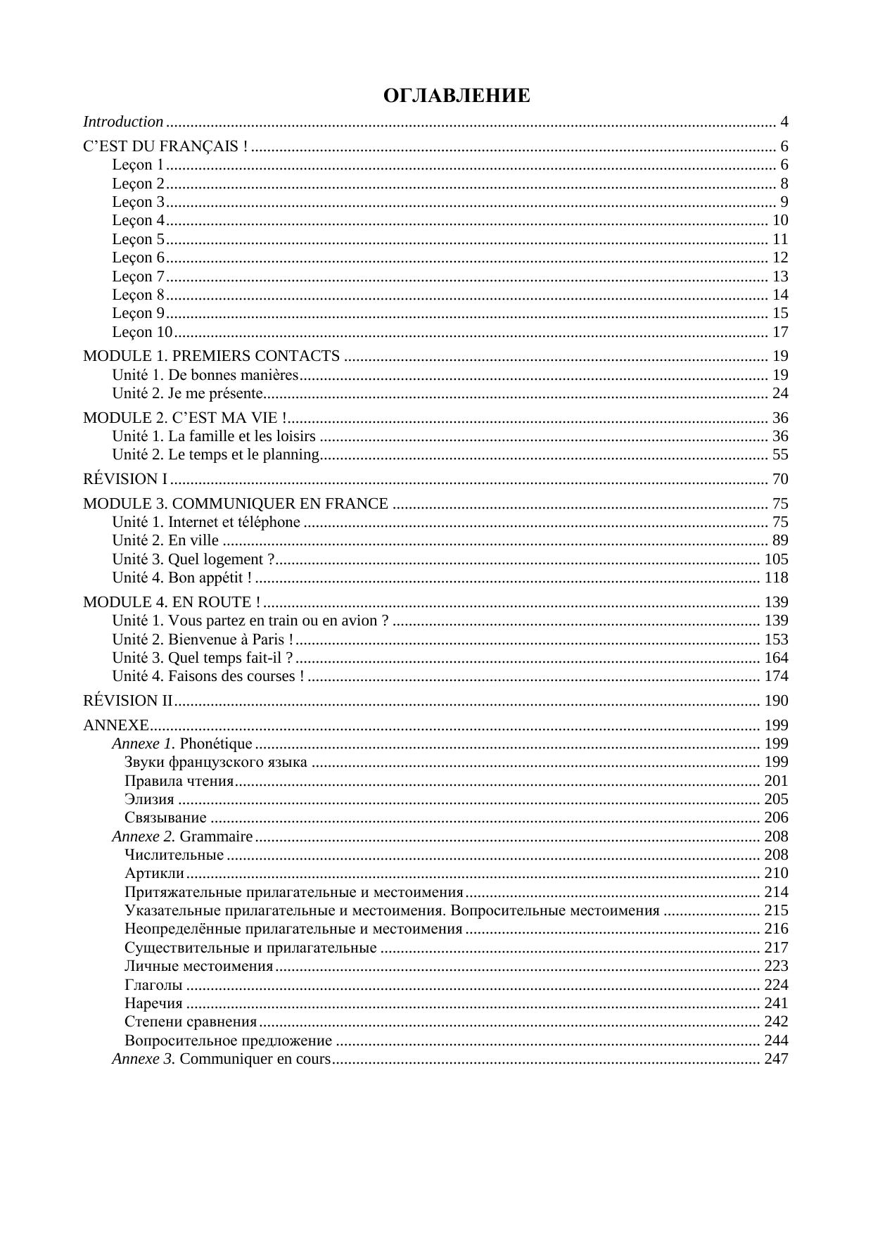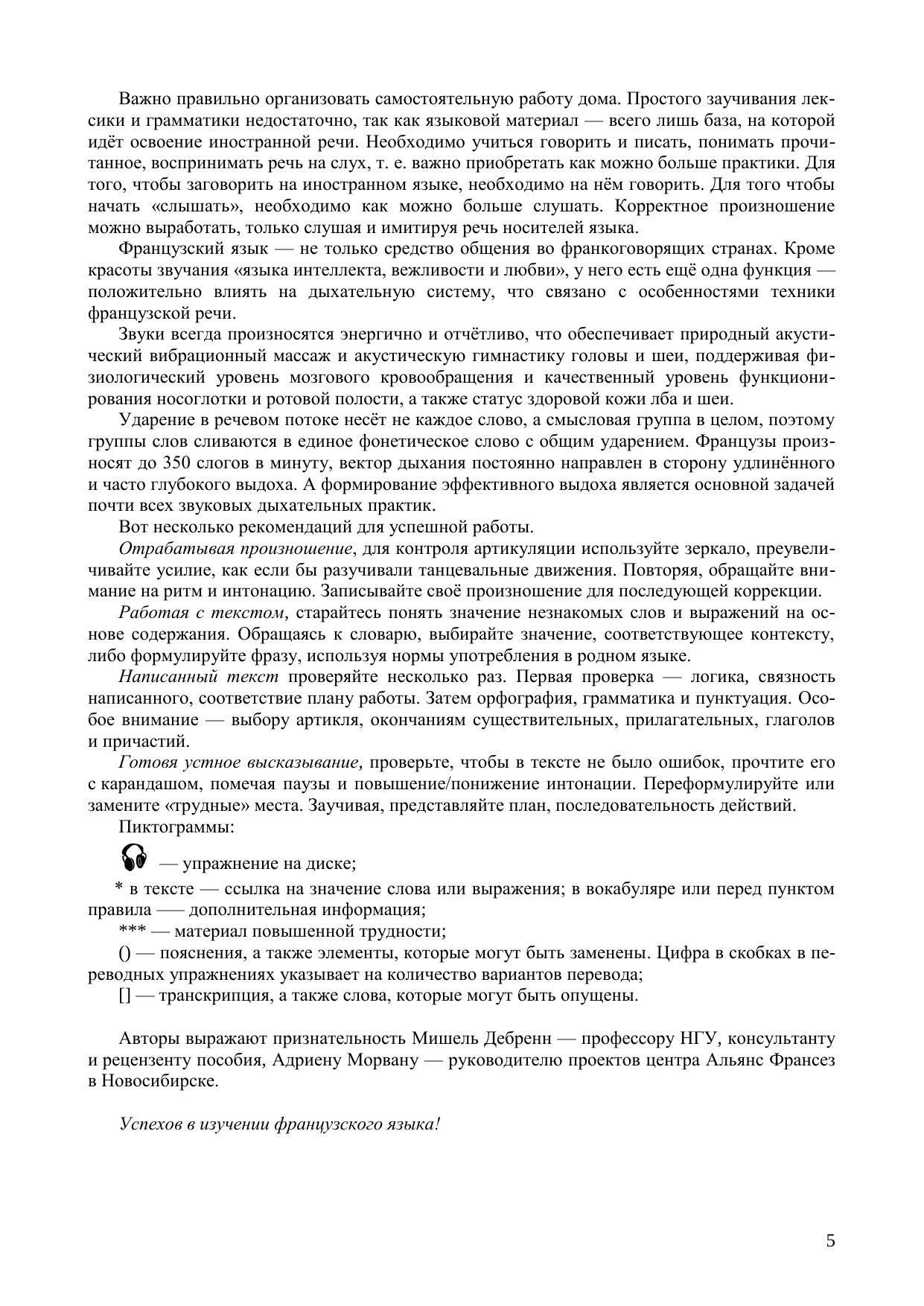 Материалы пособия подобраны с учетом возможных трудностей для русскоязычных обучающихся и включают большое количество упражнений для отработки произношения и навыков аудирования, а также перевода с русского языка на французский. Учебное пособие рассчитано примерно на 190 (академических) часов аудиторной работы и предусмат-ривает самостоятельную работу студентов. Материал всех разделов является широкоупотребительным, готовит к поездке и бытовому общению во Франции и обеспечивает достижение уровня А1+. Учебное пособие предназначено для изучения дисциплины федерального компонента ГОС «Иностранный язык» (французский) и адресовано студентам всех форм обучения по направлению подготовки 41.03.05 — Международные отношения квалификация бакалавр, изучающим французский язык как второй иностранный. Отдельные темы и разделы пособия могут быть использованы студентами других направлений подготовки, а также для подготовки к экзаменам DELF А1 и А2.