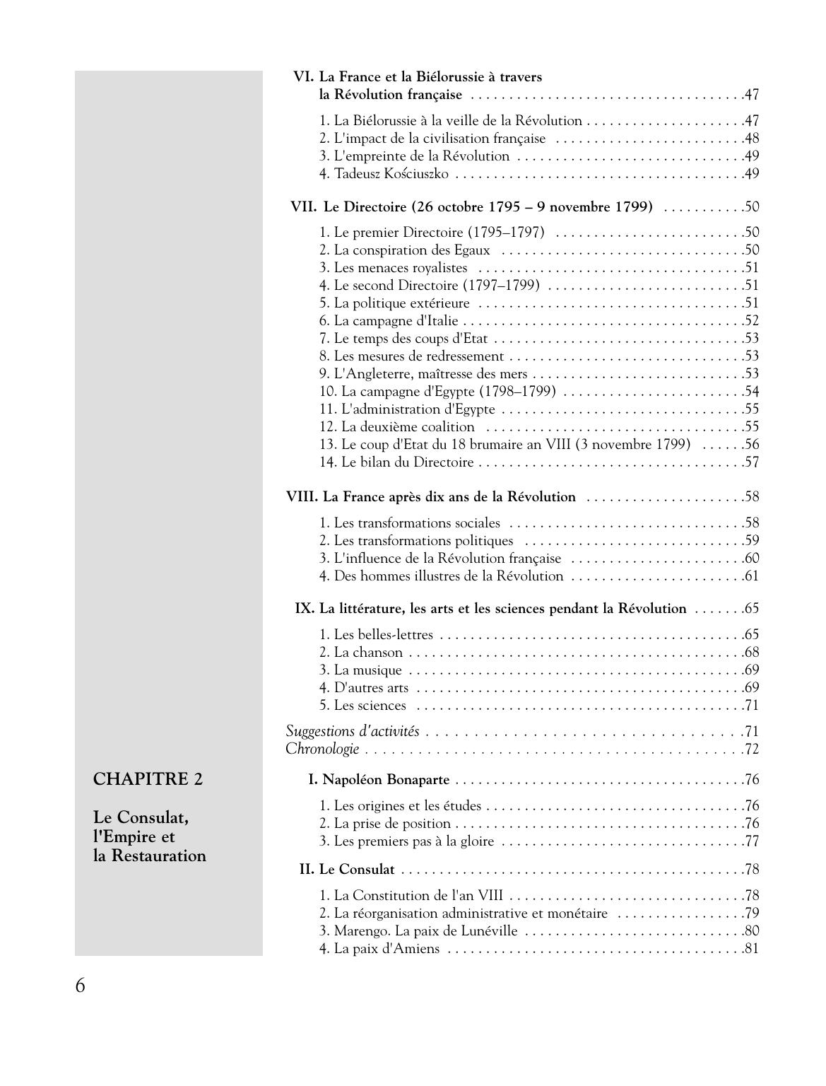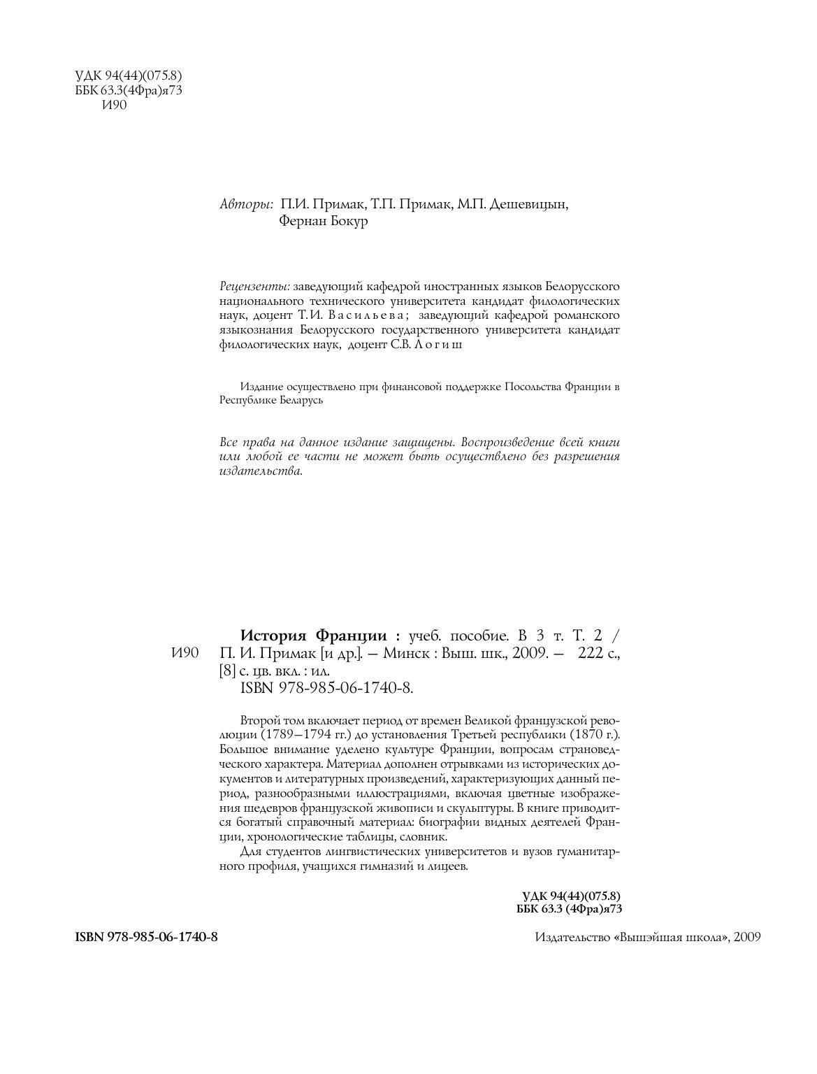 На французском языке. Рассматривается период от Великой французской революции (1789-1794 гг.) до установления Третьей Республики (1870 г.). Большое внимание уделено культуре Франции, вопросам страноведческого характера. Материал дополнен отрывками из исторических документов и литературных произведений, характеризующих данный период, разнообразными иллюстрациями, включая цветные изображения шедевров французской живописи и скульптуры. В книге приводится богатый справочный материал: биографии видных деятелей Франции, хронологические таблицы, словник. Для студентов лингвистических вузов и вузов гуманитарного профиля, учащихся гимназий и лицеев.