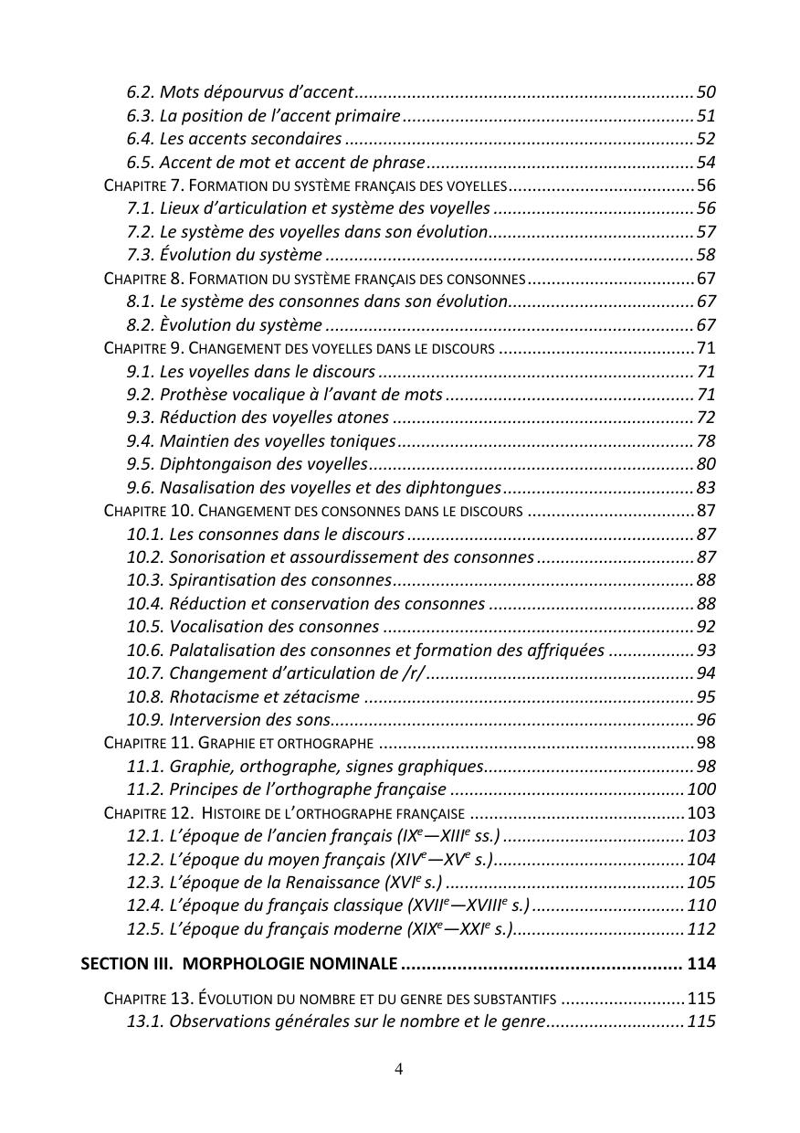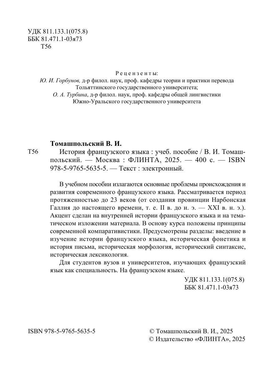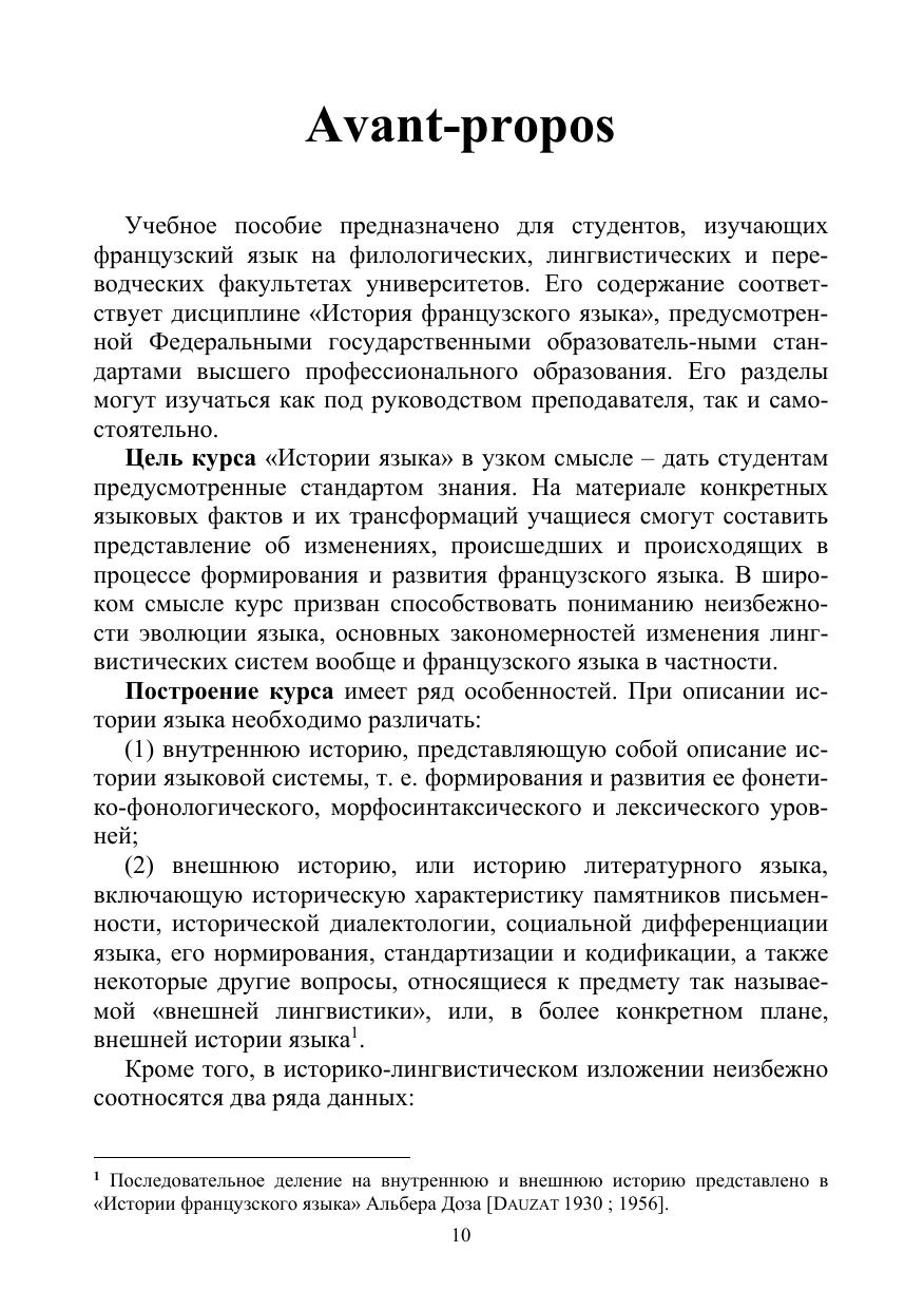 В учебном пособии излагаются основные проблемы происхождения и развития современного французского языка. Рассматривается период протяженностью до 23 веков (от создания провинции Нарбонская Галлия до настоящего времени, т. е. II в. до н. э. — XXI в. н. э.). Акцент сделан на внутренней истории французского языка и на тематическом изложении материала. В основу курса положены принципы современной компаративистики. Предусмотрены разделы: введение в изучение истории французского языка, историческая фонетика и история письма, историческая морфология, исторический синтаксис, историческая лексикология.