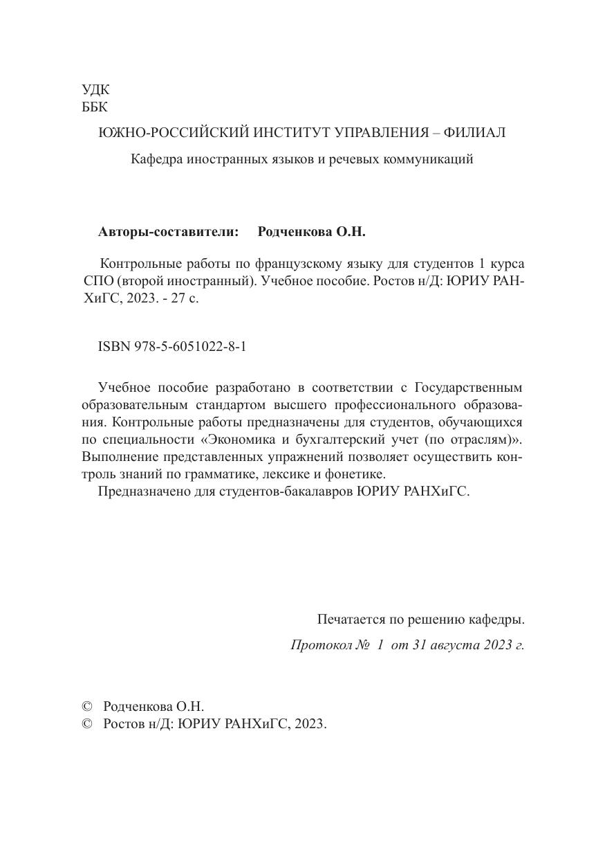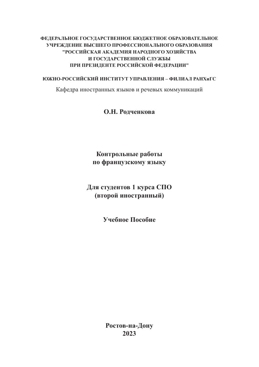 Контрольные работы по французскому языку для студентов 1 курса СПО (второй иностранный)