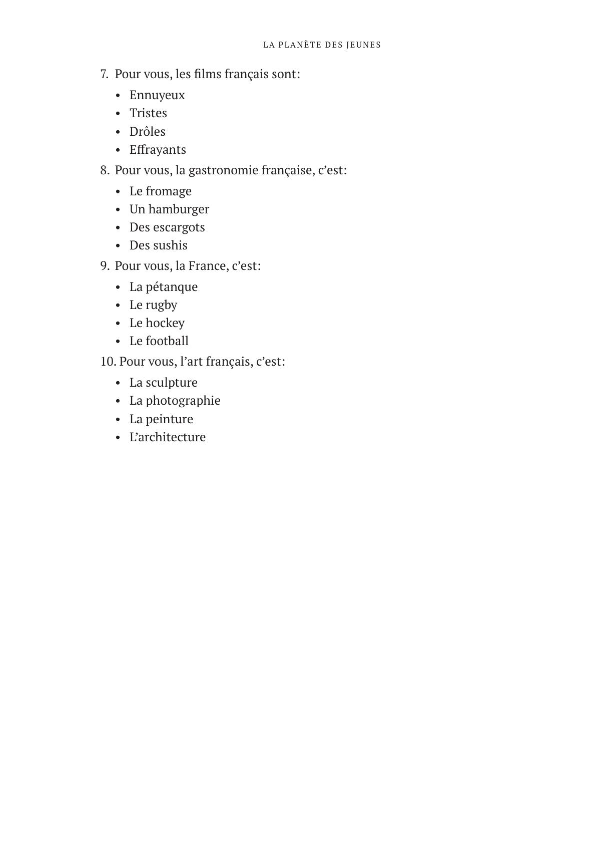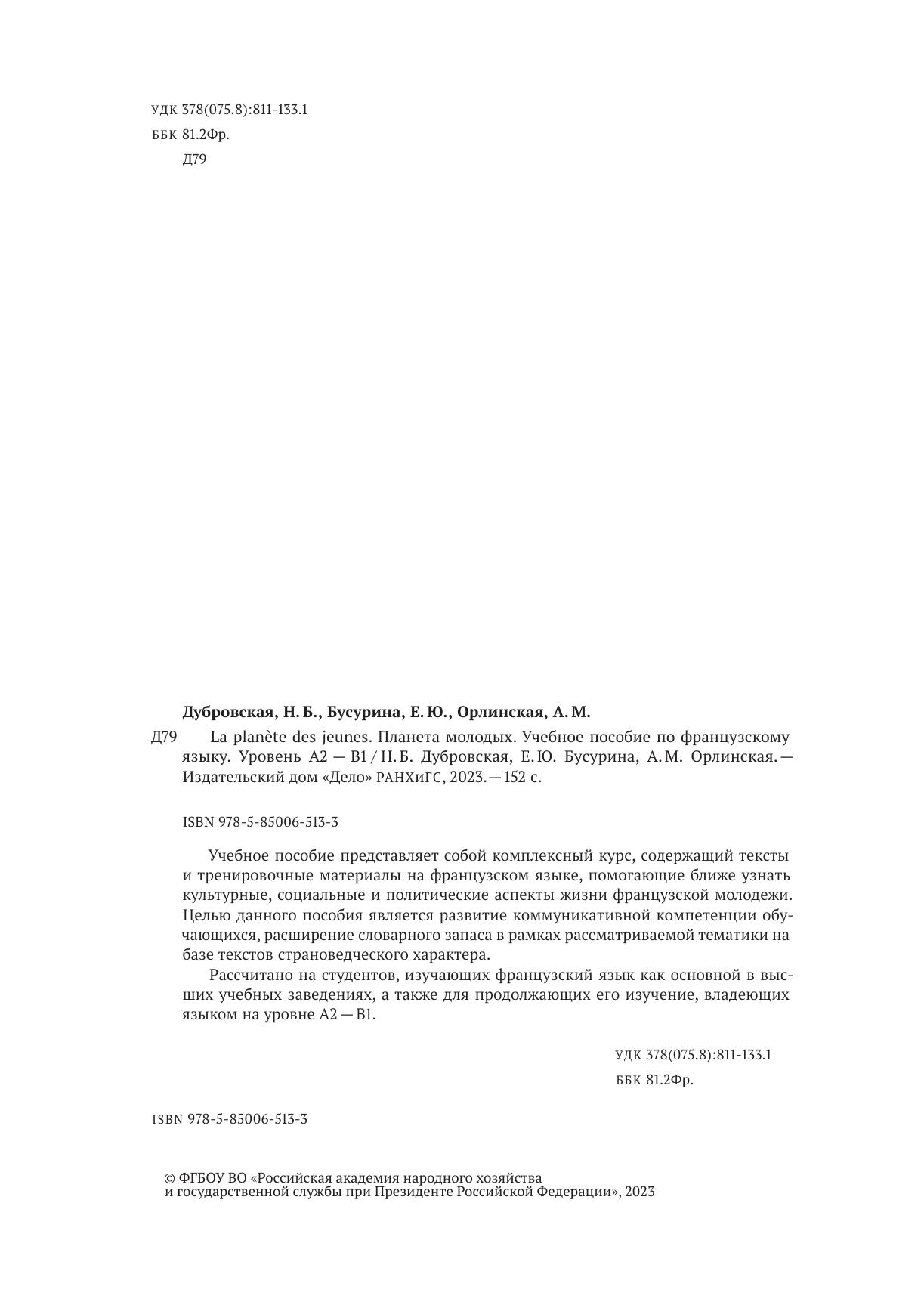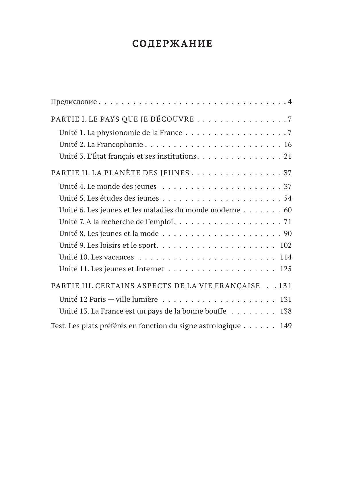 Учебное пособие представляет собой комплексный курс, содержащий тексты и тренировочные материалы на французском языке, помогающие ближе узнать культурные, социальные и политические аспекты жизни французской молодежи. Целью данного пособия является развитие коммуникативной компетенции обучающихся, расширение словарного запаса в рамках рассматриваемой тематики на базе текстов страноведческого характера. Рассчитано на студентов, изучающих французский язык как основной в высших учебных заведениях, а также для продолжающих его изучение, владеющих языком на уровне A2-B1