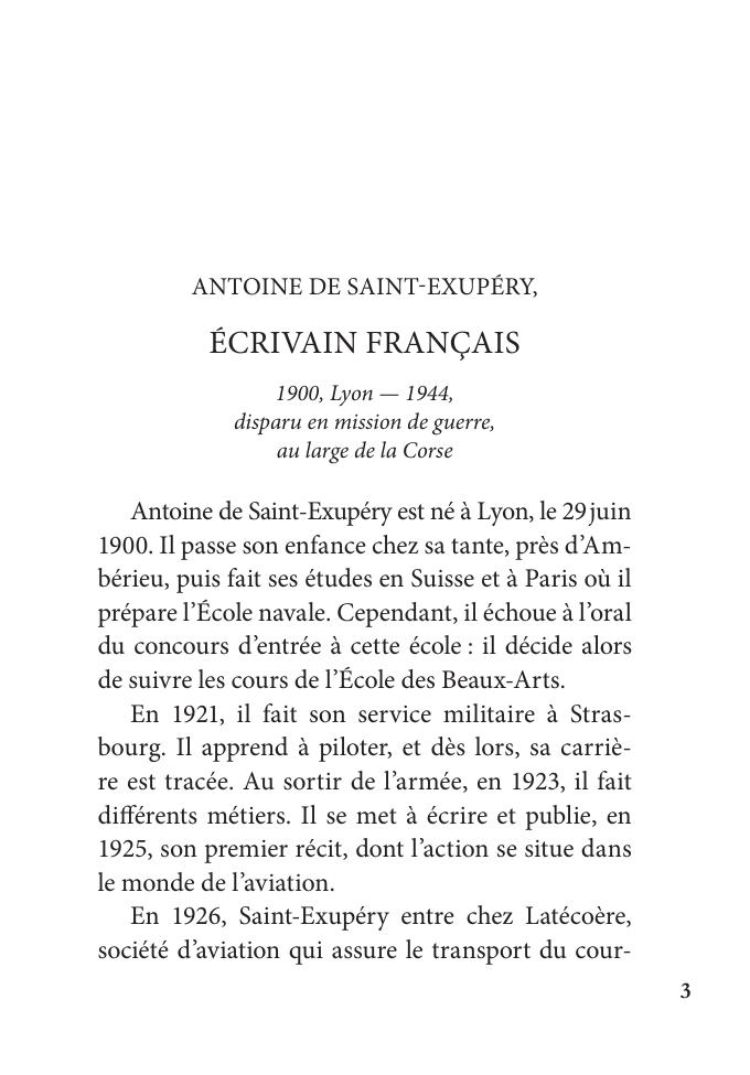 Книга для чтения предназначена, главным образом, для учащихся старших классов школ с углубленным изучением французского языка и для студентов младших курсов языковых вузов. Книга также окажется полезной всем, кто интересуется французской литературой XX века и творчеством известного писателя Антуана де Сент-Экзюпери.