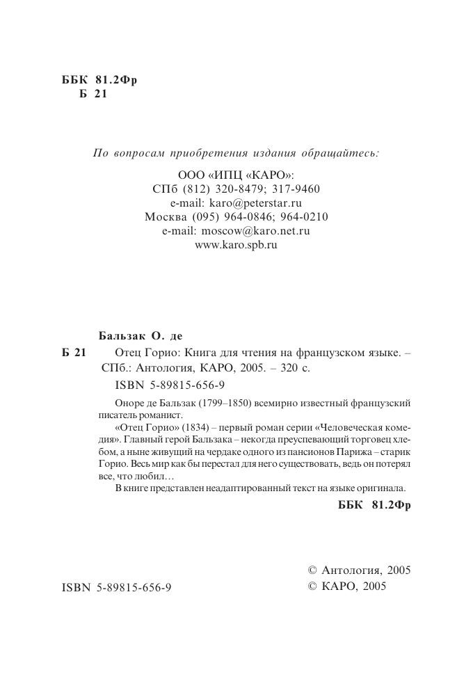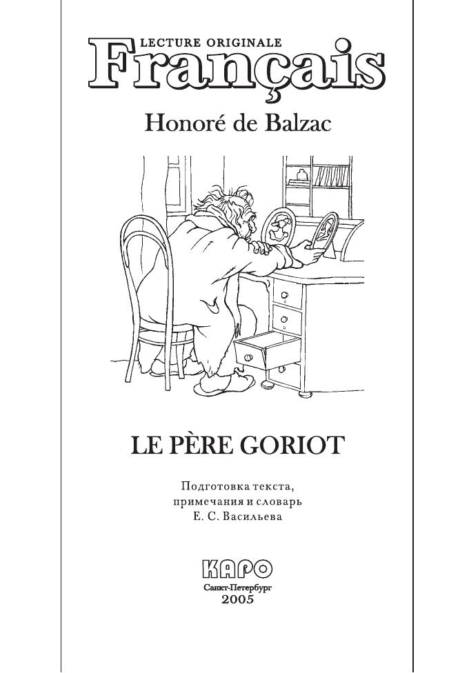 Оноре де Бальзак (1799-1850) всемирно известный французский писатель романист. «Отец Горио» (1834) - первый роман серии «Человеческая комедия». Главный герой Бальзака - некогда преуспевающий торговец хлебом, а ныне живущий на чердаке одного из пансионов Парижа - старик Горио. Весь мир как бы перестал для него существовать, ведь он потерял все, что любил...В книге представлен неадаптироваиный текст на языке оригинала