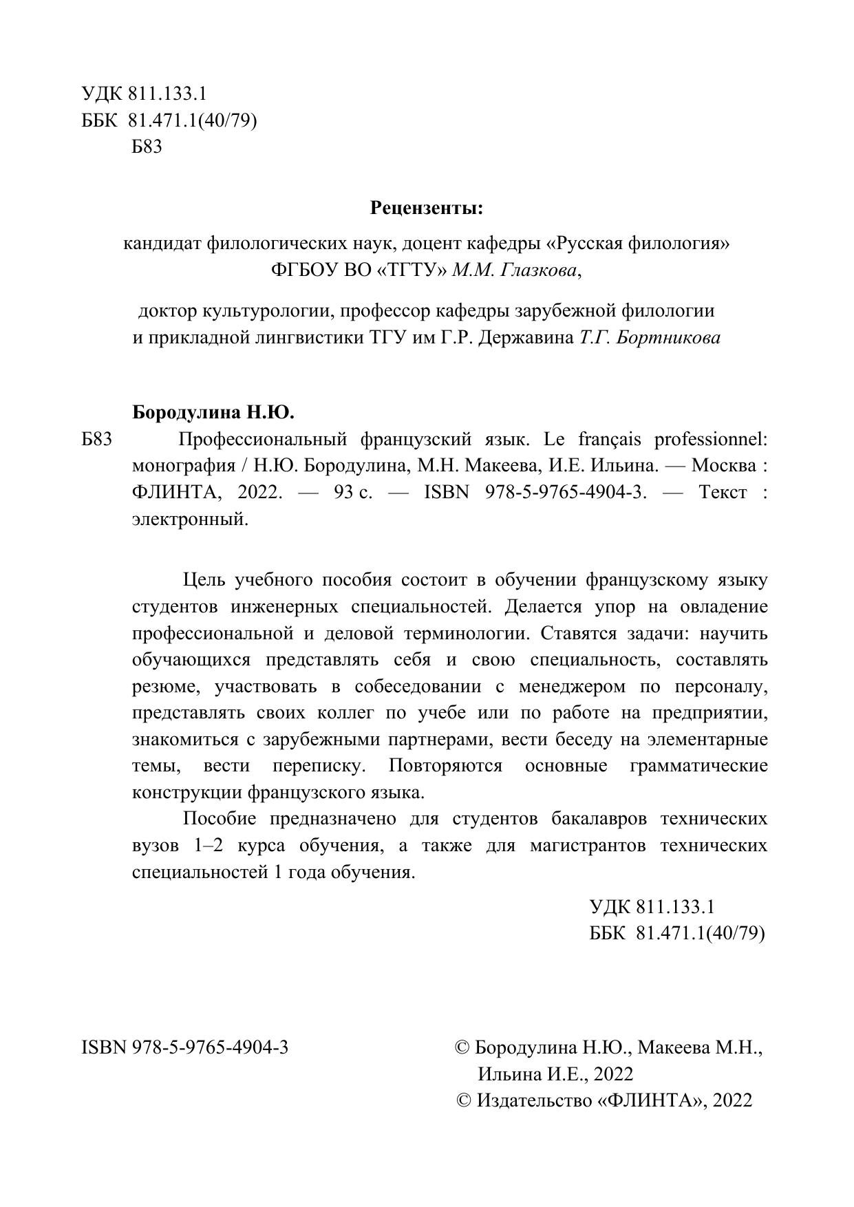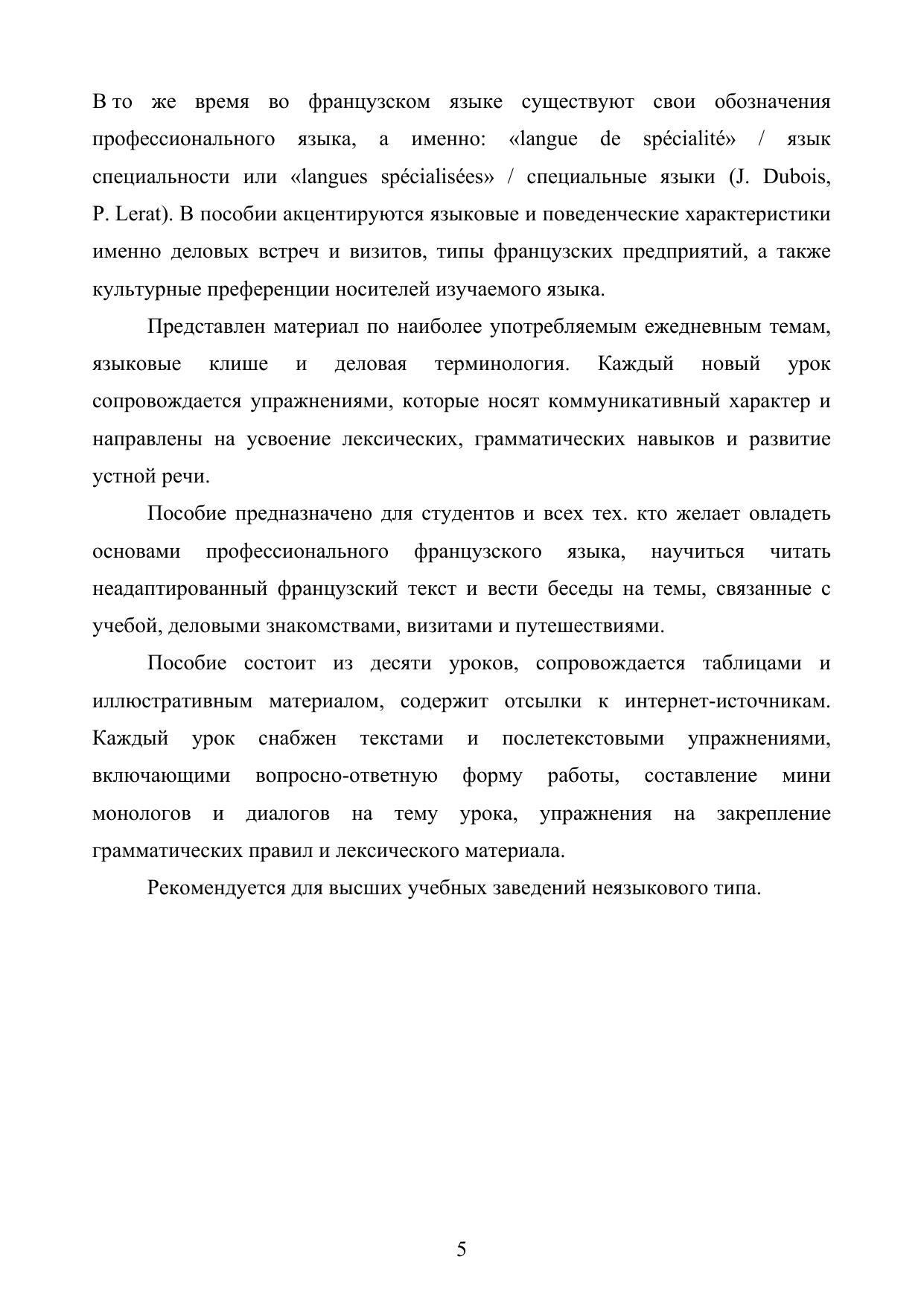 Цель учебного пособия состоит в обучении французскому языку студентов инженерных специальностей. Делается упор на овладение профессиональной и деловой терминологии. Ставятся задачи: научить обучающихся представлять себя и свою специальность, составлять резюме, участвовать в собеседовании с менеджером по персоналу, представлять своих коллег по учебе или по работе на предприятии, знакомиться с зарубежными партнерами, вести беседу на элементарные темы, вести переписку. Повторяются основные грамматические конструкции французского языка.
