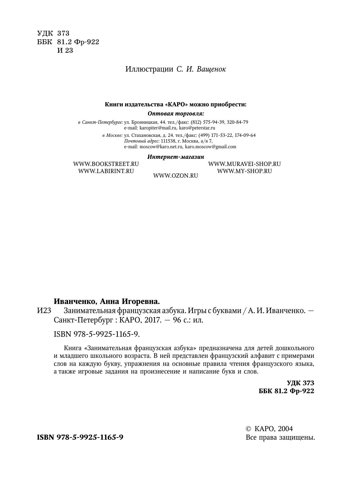 Книга «Занимательная французская азбука» предназначена для детей дошкольного и младшего школьного возраста. В ней представлен французский алфавит с примерами слов на каждую букву, упражнения на основные правила чтения французского языка, а также игровые задания на произнесение и написание букв и слов.