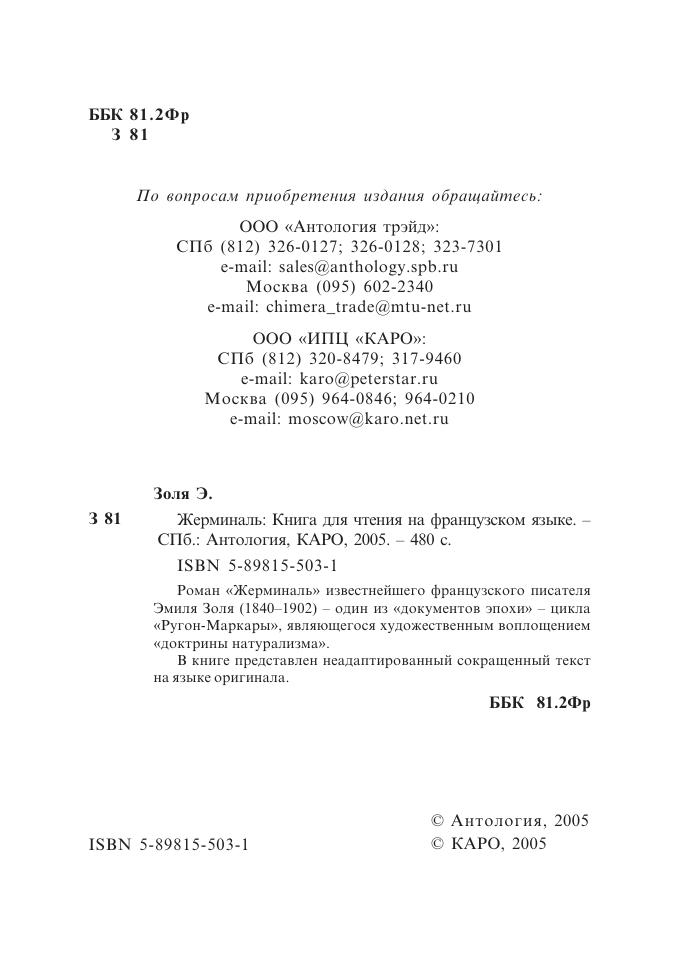 Книга для чтения на французском языке. Роман "Жерминаль" известнейшего французского писателя Эмиля Золя (1840-1902) - один из документов эпохи - цикла "Ругон-Маркары", являющегося художественным воплощением доктрины натурализма. В книге представлен неадаптированный сокращенный текст на языке оригинала.