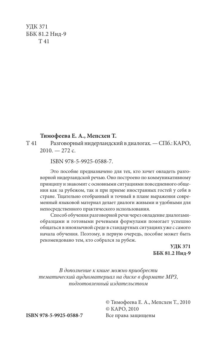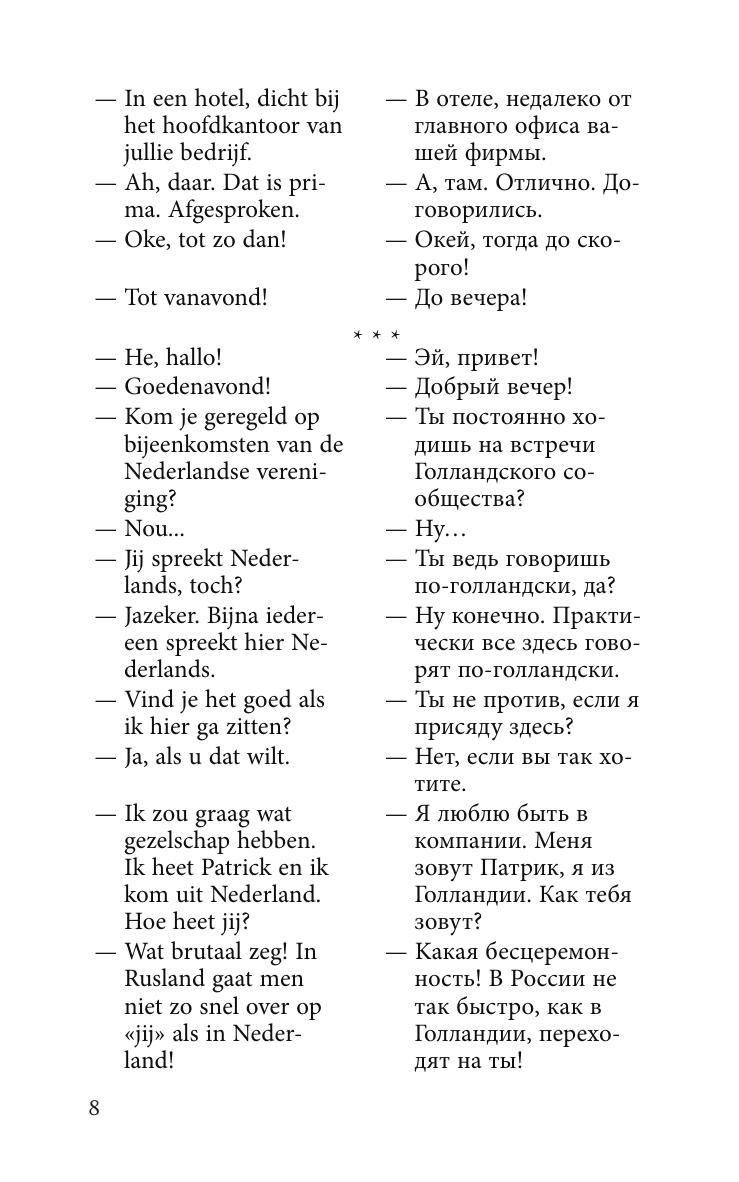 Это пособие предназначено для тех, кто хочет овладеть разговорной нидерландской речью. Оно построено по коммуникативному принципу и знакомит с основными ситуациями повседневного общения как за рубежом, так и при приеме иностранных гостей у себя в стране. Тщательно отобранный и точный в плане выражения современный языковой материал делает диалоги живыми и удобными для непосредственного практического использования. Способ обучения разговорной речи через овладение диалогами-образцами и готовыми речевыми формулами помогает успешно общаться в иноязычной среде в стандартных ситуациях уже с самого начала обучения. Поэтому, в первую очередь, пособие может быть рекомендовано тем, кто собрался за рубеж.