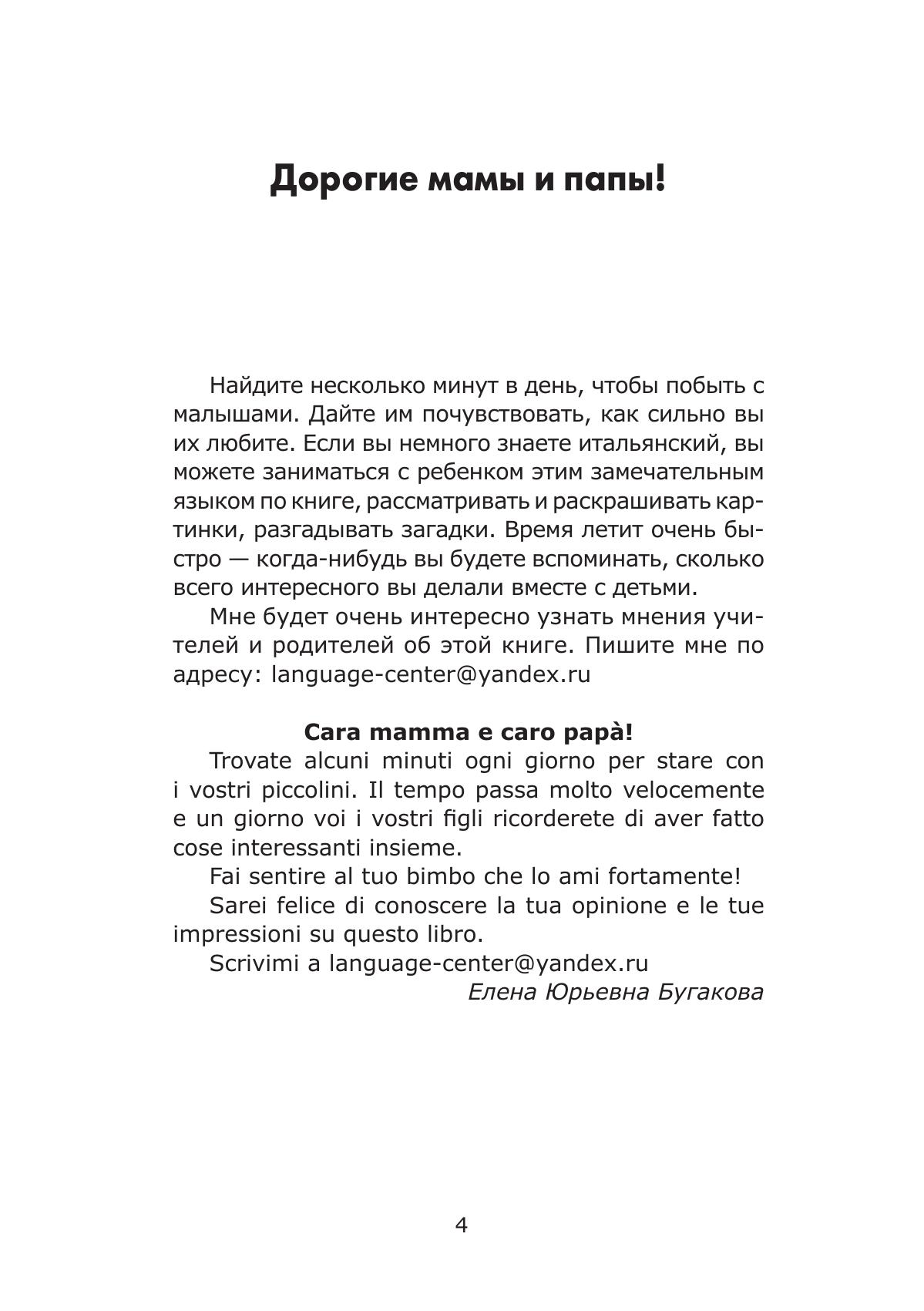 Предлагаемое издание можно использовать на уроках итальянского языка в качестве дополнительного учебного пособия, а также для изучения языка в индивидуальном порядке с преподавателем или родителями. Занимаясь по этой книге, дети совершенствуют уже имеющиеся у них знания, а также знакомятся с новой лексикой. В конце книги приводится словарь.