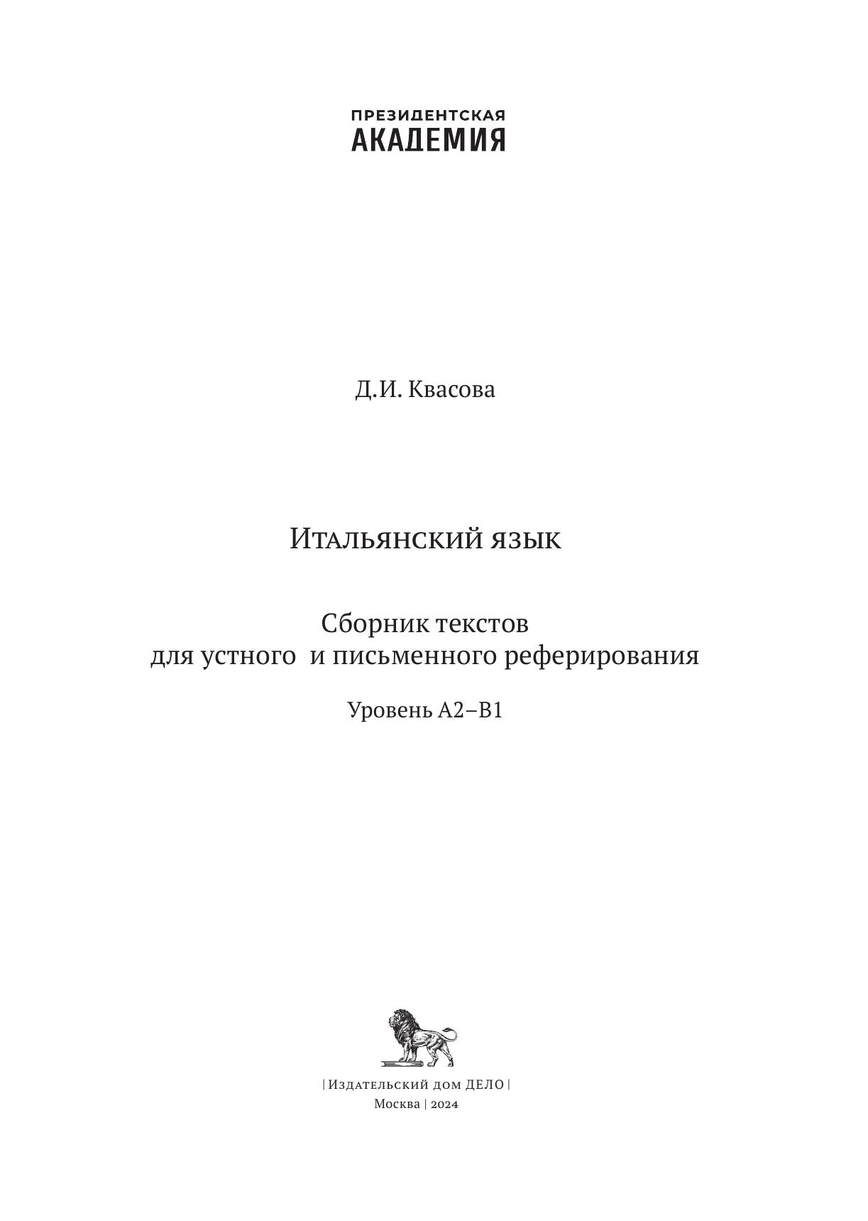 Итальянский язык. Сборник текстов для устного и письменного реферирования. Уровень А2–В1