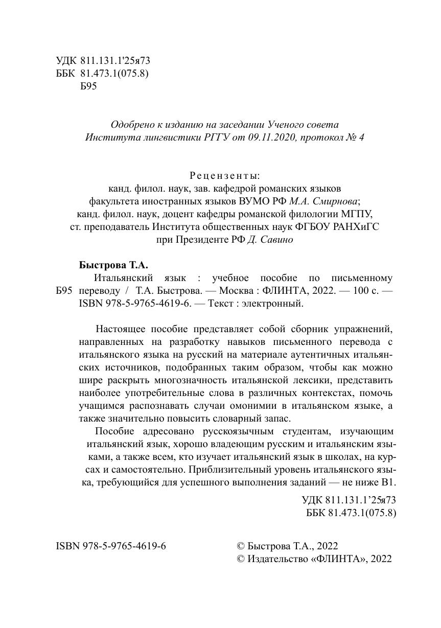 Пособие адресовано русскоязычным студентам, изучающим итальянский язык, хорошо владеющим русским и итальянским языками, а также всем, кто изучает итальянский язык в школах, на курсах и самостоятельно. Приблизительный уровень итальянского языка, требующийся для успешного выполнения заданий — не ниже B1.