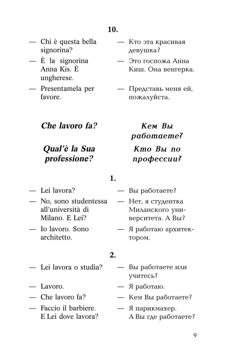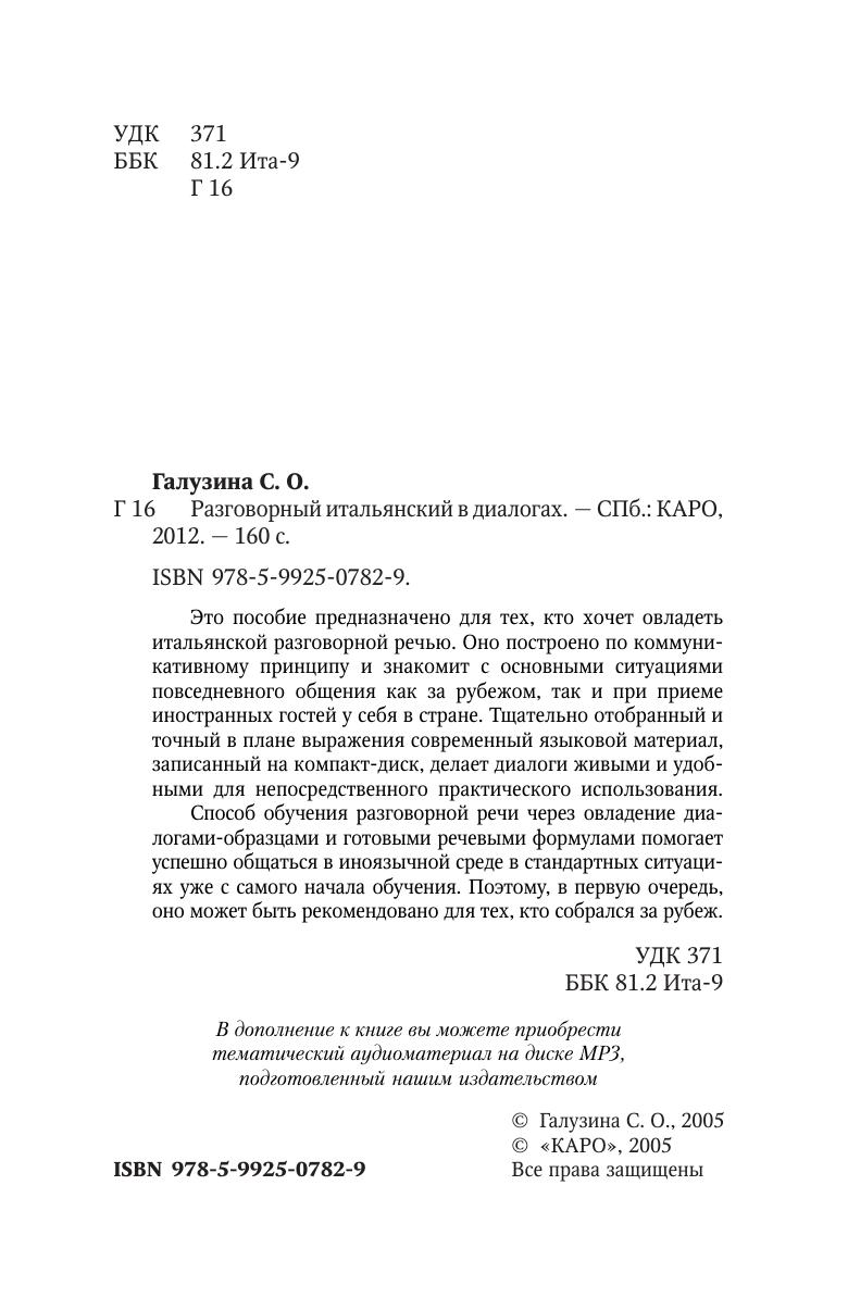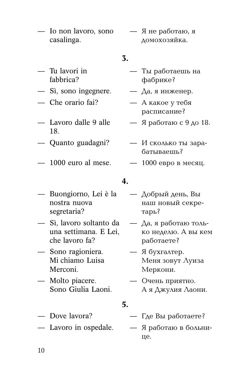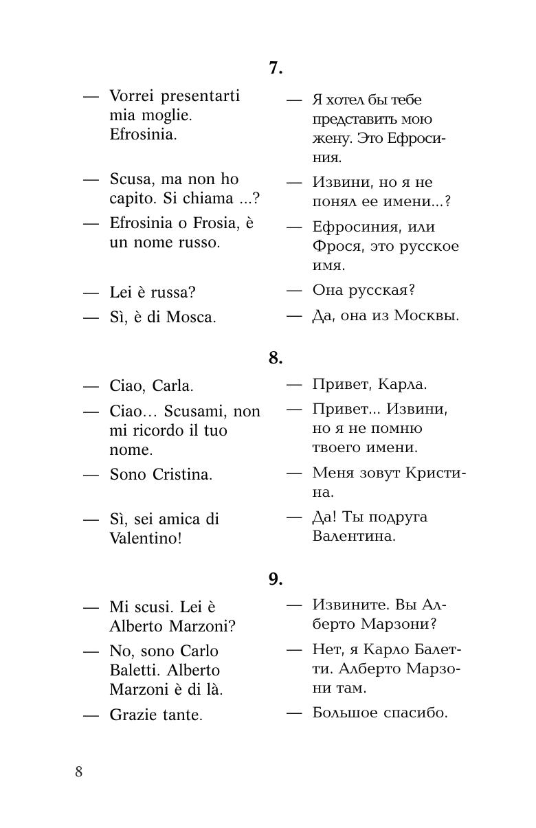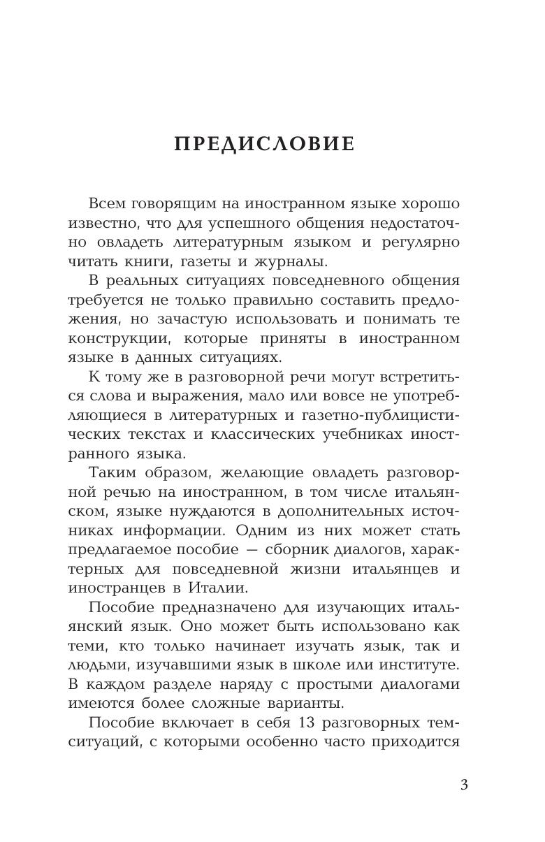 Это пособие предназначено для тех, кто хочет овладеть итальянской разговорной речью. Оно построено по коммуникативному принципу и знакомит с основными ситуациями повседневного общения как за рубежом, так и при приеме иностранных гостей у себя в стране. Тщательно отобранный и точный в плане выражения современный языковой материал, записанный на компакт-диск, делает диалоги живыми и удобными для непосредственного практического использования.Способ обучения разговорной речи через овладение диалогами-образцами и готовыми речевыми формулами помогает успешно общаться в иноязычной среде в стандартных ситуациях уже с самого начала обучения. Поэтому, в первую очередь, оно может быть рекомендовано для тех, кто собрался за рубеж.