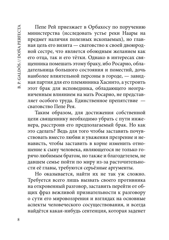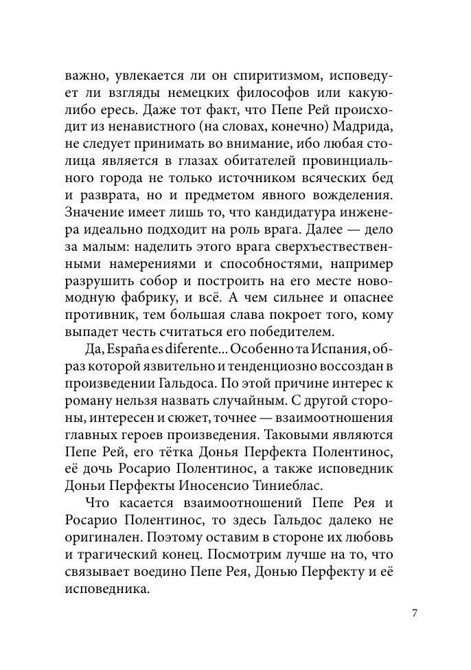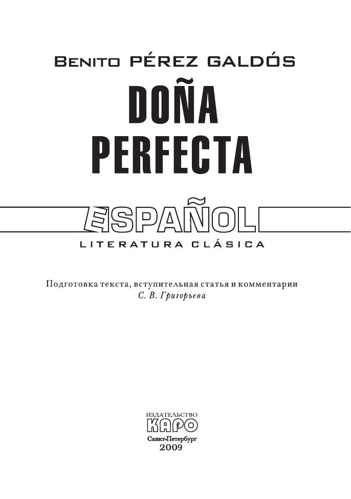 Бенито Перес Гальдос (1843–1920) — наиболее значительный представитель критического реализма в Испании. Его роман «Донья Перфекта» — первый опыт писателя в жанре социально-тенденциозного романа. На фоне конфликта молодого столичного инженера Пепе Рея и его провинциальной тетушки Доньи Перфекты Гальдос дает интересное описание испанского общества конца XIX века.В данное издание включен полный текст произведения, снабженный подробным историческим и лексико-грамматическим комментарием. Книга может быть рекомендована студентам-испанистам, преподавателям испанского языка, специалистам в области испанской и западноевропейской литературы, а также всем тем, кто интересуется языком, культурой и историей Испании.