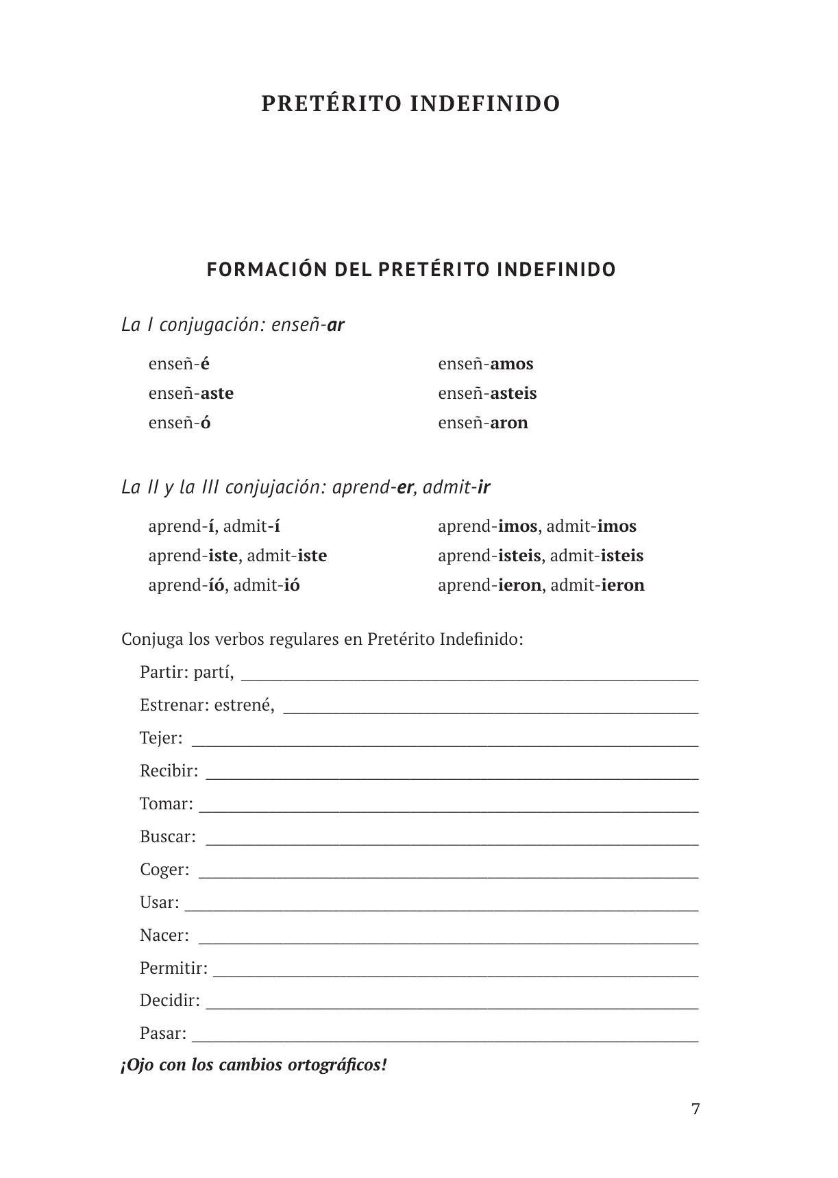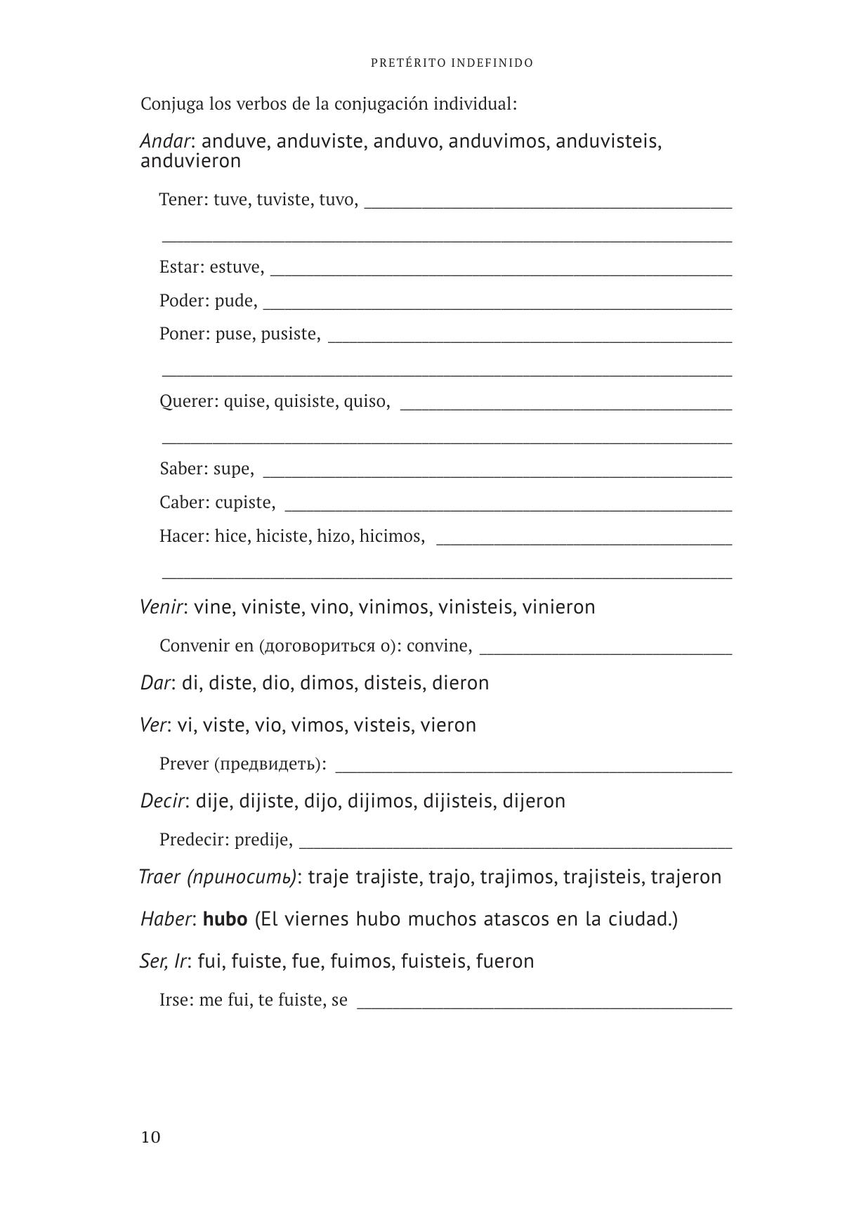 Учебное пособие предназначено для студентов, освоивших начальный уровень испанского языка в качестве дополнительного учебного материала для изучения и тренировки глагольных форм во временах плана прошедшего изъявительного наклонения: Pretérito Indefinido, Pretérito Imperfecto, Pretérito Pluscuamperfecto y Potencial Simple, а также для более глубокого понимания употребления данных времен в современном испанском языке. Автор использует метод изучения грамматических явлений в контексте: пособие содержит грамматический материал, в ос-новном в виде текстов, историй, диалогов и речевых моделей, знакомство с которым поможет учащимся научиться понимать современный язык и общаться на нем в реальной жизни. Данный подход основывается на многолетнем позитивном опыте преподавания испанского языка и неизменно мотивирует самых разных учащихся интересоваться испанским языком и испанской культурой.